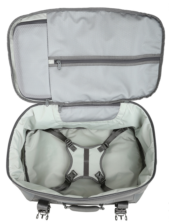 Main compartment with 3 zippered mesh pockets and compression straps.