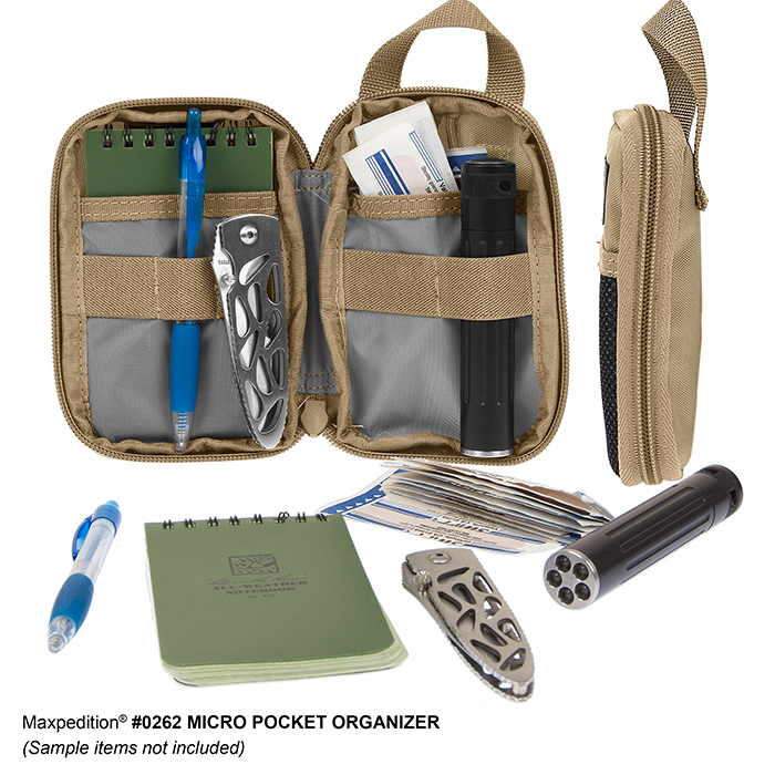 The Maxpedition Micro Pocket Organizer made of extremely durable 1000 denier nylon is the ideal bag for an EDC kit. It features two interior slip pockets and elastic attachment loops. The Micro Pocket Organizer can be attached to MOLLE compatible backpacks and vests with two Maxpedition 3" TacTie Attachment Straps (sold separately, not included).