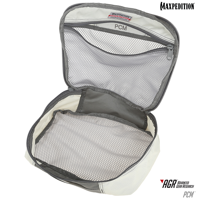 The Maxpedition Packing Cube from the Advanced Gear Research series is a universal storage bag, which is ideal for travel accessories. The front and back are made of breathable mesh, so that even wet clothes can be packed in it. The Packing Cube can be folded flat when not in use. The material of the Packing Cube is made of extremely abrasion-resistant 420 denier nylon and 500 denier hex ripstop nylon, which is triple PU coated on the inside and Teflon coated on the outside.
