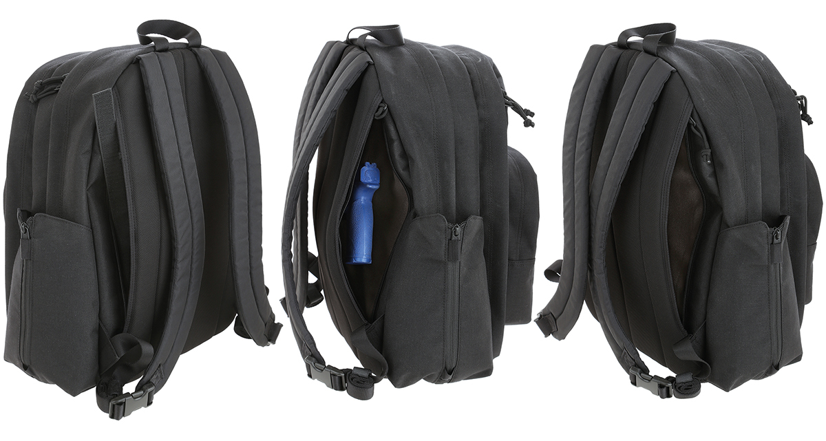 The Prepared Citizen Deluxe is an evolution of the Classic model. The Deluxe is also based on the unobtrusive design of a "lifestyle" backpack, but has a larger volume, more compartments and additional features, including the fully Velcro covered CCW compartment and two expandable bottle holders. Despite its understated appearance, it's made of extremely durable 1000D nylon, double-stitched and Bartack reinforcements throughout, and reinforced stitching construction at the shoulder strap connections.