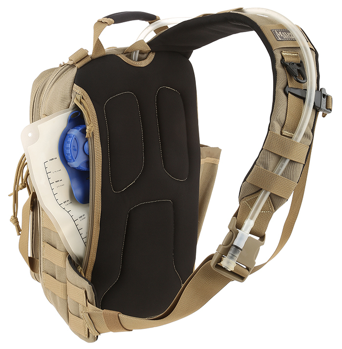 Maxpedition Sitka Gearslinger with a carrier, for many uses, as it can be worn both on the back and in front of the belly. The Sitka GearSlinger is made entirely of water and abrasion resistant 1000 denier nylon, which is triple PU coated inside and Teflon outside. Hook & loop accessories can be attached to the main compartment and hydration system compartment