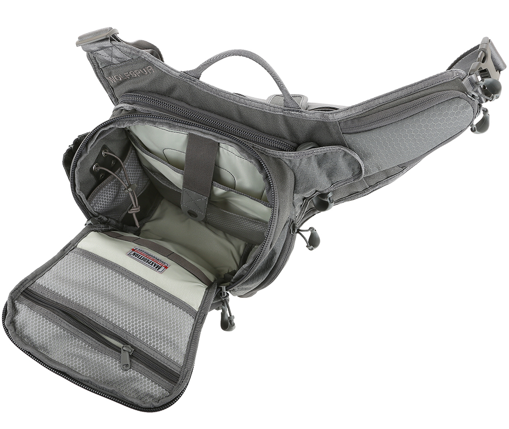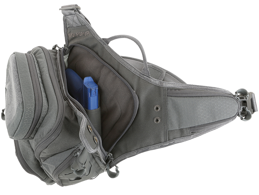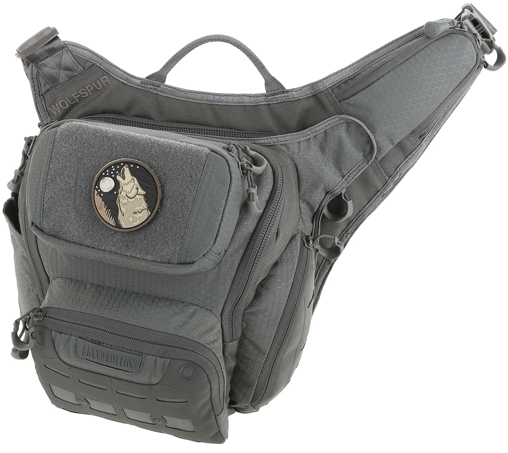 The Maxpedition Wolfspur from the Advanced Gear Research series is a crossbody shoulder bag optimized for concealed carry of handguns.