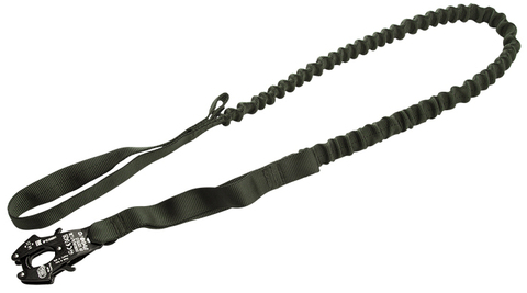 The flexible deployment cord from md-textil is simple, well thought-out and robust. The rope is reduced to a minimum of components in order to maintain the maximum breaking load. It was deliberately dispensed with rotatable parts and break-prone carabiners and rings. The line is made of 25 mm tubular webbing which was produced according to MIL SPEC MIL-W-5625 and has a breaking load of approx. 1800kg. Inside, a sturdy rubber core ensures that the leash compresses when not in use. The upper hand loop is designed with a left-hand loop, so the leash can be looped to the belt or other objects. The additional engagement behind the carabiner also serves as a short guide. Quick fixation of the dog is thus guaranteed even in stressful situations. Both on the hand loop, as well as on the short guide loops are sewn, by an optional carabiner, these two loops can be connected to use the leash as a short guide. The carabiner is an innovative system from KONG. No unintentional opening due to the patented FROG system, but still extremely easy to unhook and rehook. The closure locks automatically after touching e.g. on the ring and opens again only by pressing on both sides and has a breaking load of 2600 kg. Handmade in Germany from the best materials available.