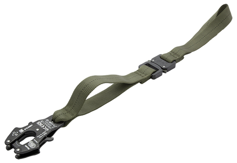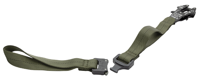 The short leader leash is made of MIL SPEC MIL-W-5625 certified tubular webbing, the leash lies perfectly in the hand with its width of 25mm. The leash has a breaking load of >1000 kg.