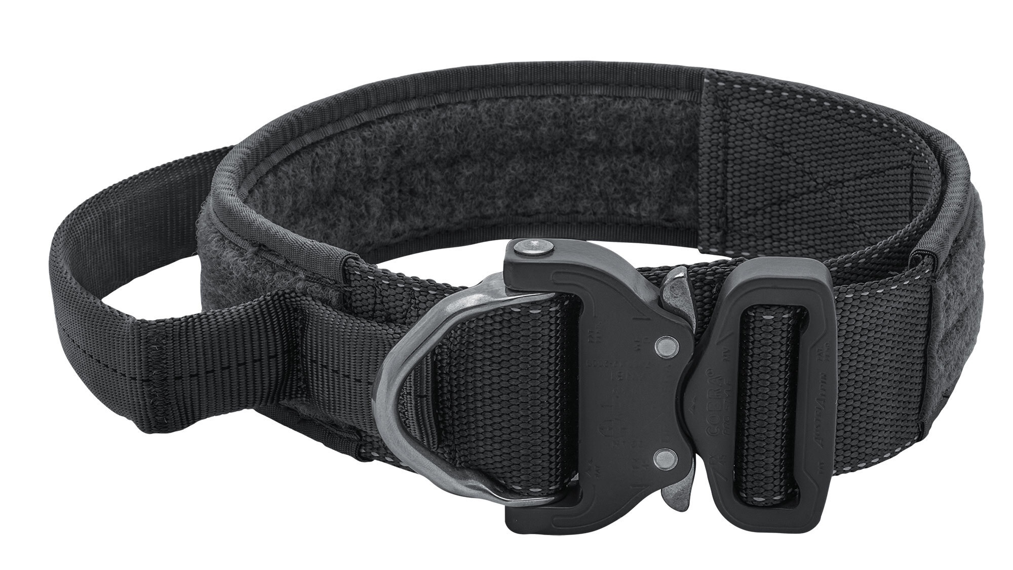 This working and deployment collar 45 mm from md-textil has a magnetic handle that completely attaches to the collar when not in use and safely prevents the dog from getting stuck. Thanks to the D-ring cobra from Austri Alpin in conjunction with the certified TYP7 webbing, failure of the collar is impossible. The webbing was laid in two layers, sewn on the outside, as well as inside with fleece velcro and then edged to ensure the maximum wearing comfort.