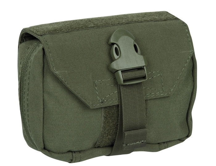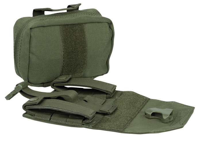 The Medic pouch is attached to a Molle plate for quick access with Velcro and fleece and is secured with webbing with a Fastex buckle.