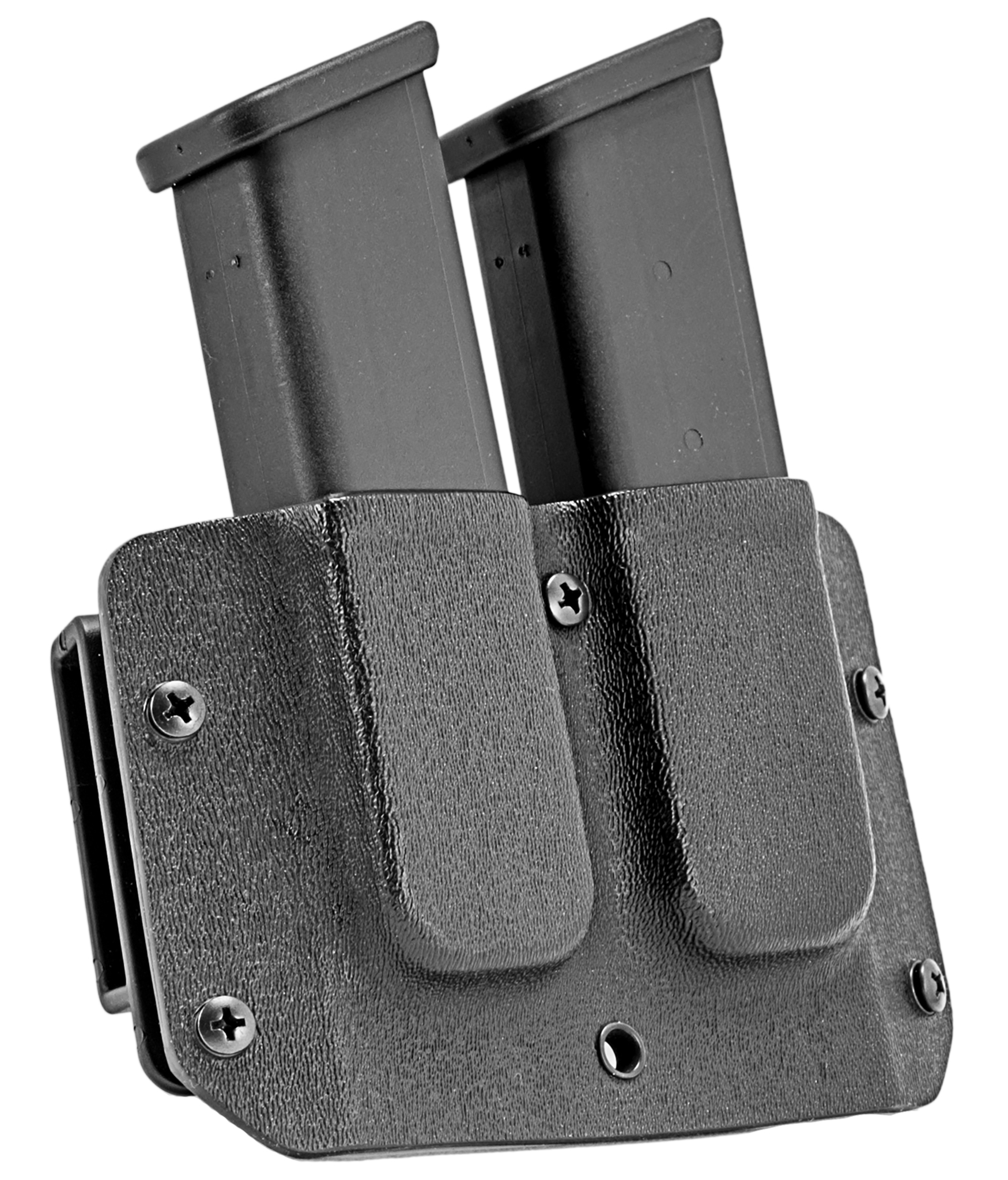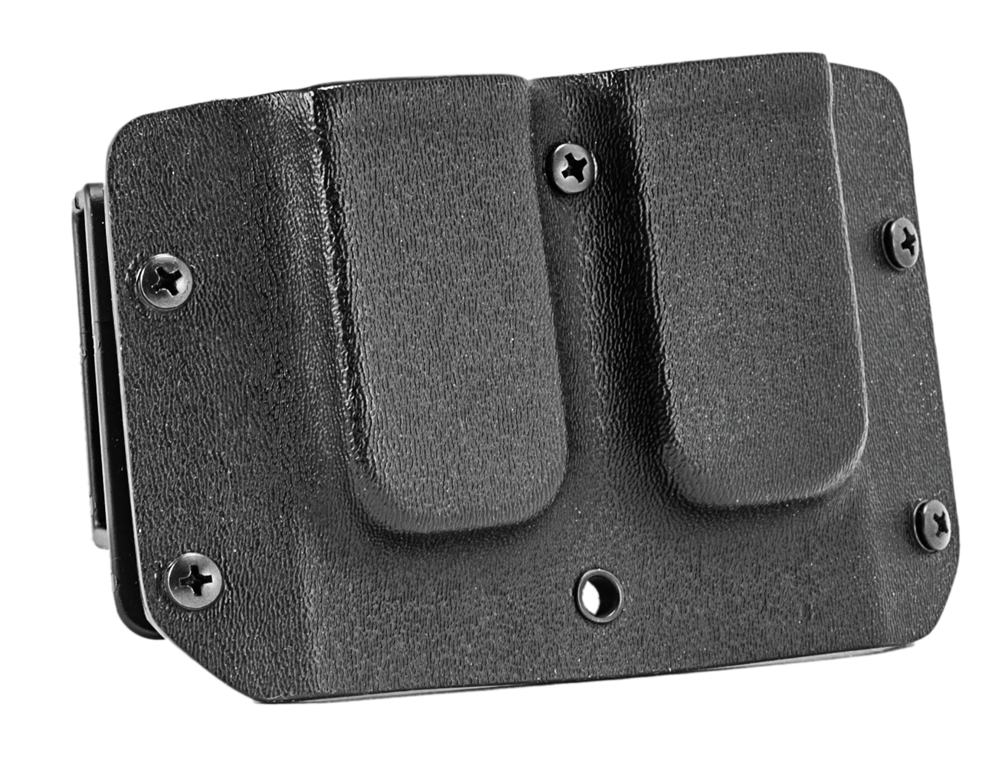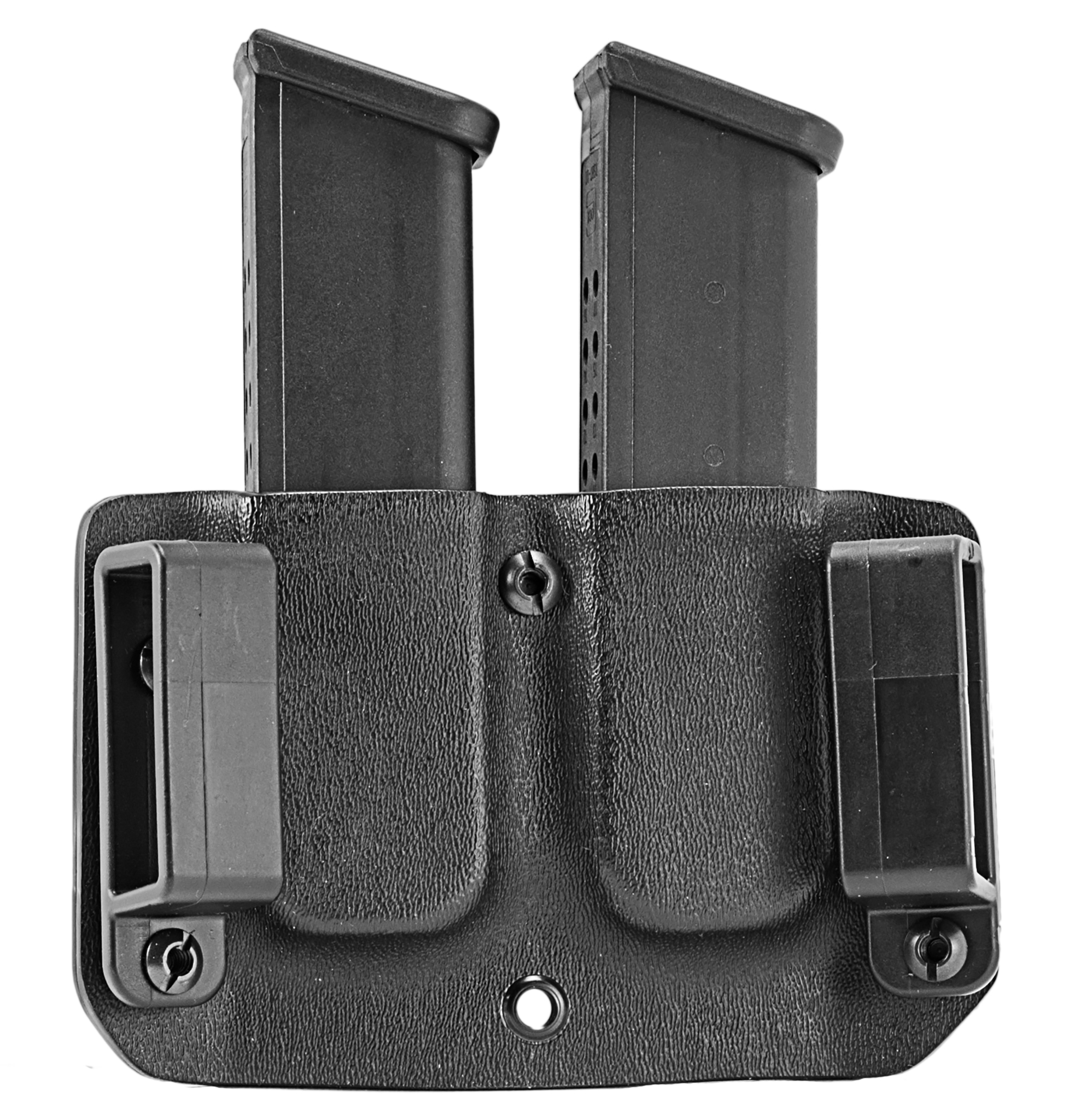 The Mission First Tactical Double Mag Pouch is the ideal addition to your MFT holster. With its slim, low profile and adjustable draw resistance, it offers maximum flexibility and ease of use. This ambidextrous mag pouch is made from rugged Kydex and features precision craftsmanship. As standard, the magazine pouch comes with 38mm belt loops, which can be easily exchanged for other carrying elements to meet your individual needs. Experience the highest quality and functionality with the MFT Double Stack Mag Pouch.