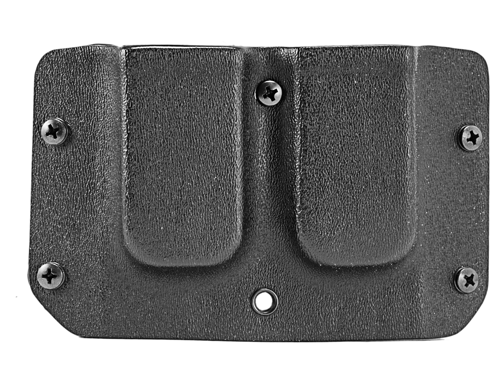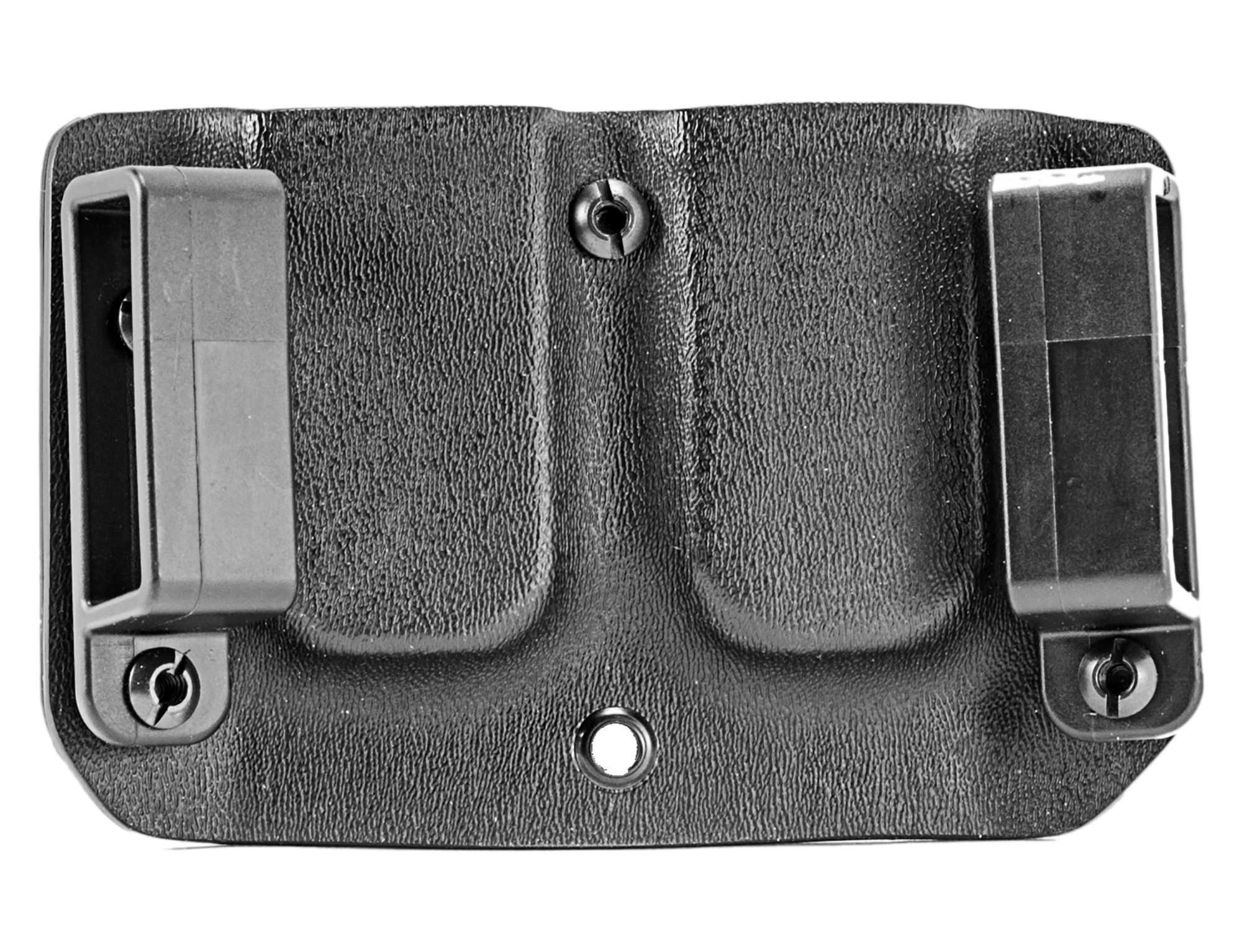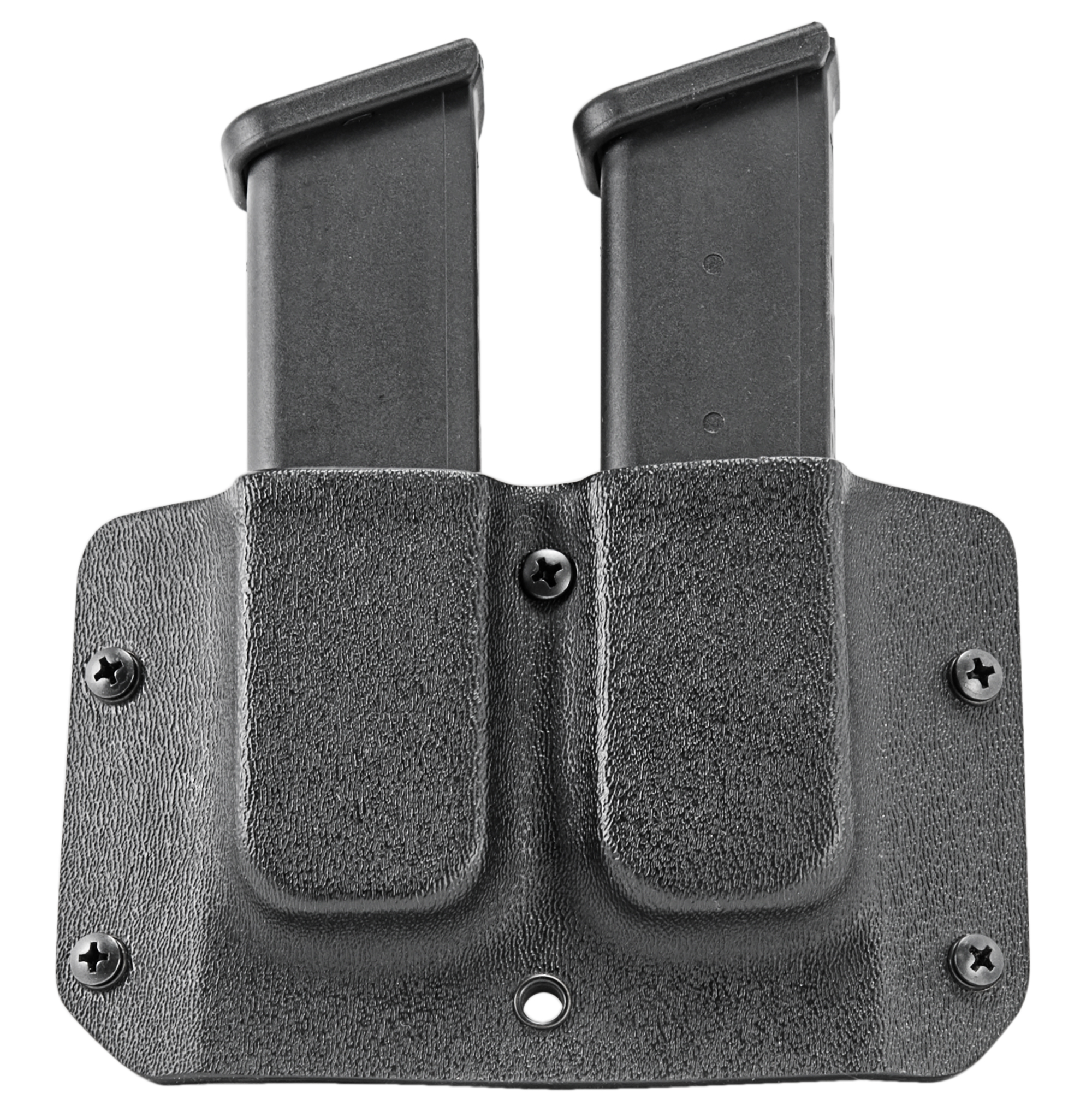 The Mission First Tactical Double Mag Pouch is the ideal addition to your MFT holster. With its slim, low profile and adjustable draw resistance, it offers maximum flexibility and ease of use. This ambidextrous mag pouch is made from rugged Kydex and features precision craftsmanship. As standard, the magazine pouch comes with 38mm belt loops, which can be easily exchanged for other carrying elements to meet your individual needs. Experience the highest quality and functionality with the MFT Double Stack Mag Pouch.