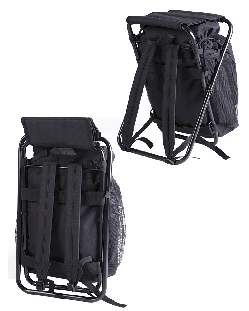 This backpack with stool is an ideal outdoor companion. The wide base makes it stand very securely even on uneven terrain and its steel folding frame makes it sturdy yet easy to carry.