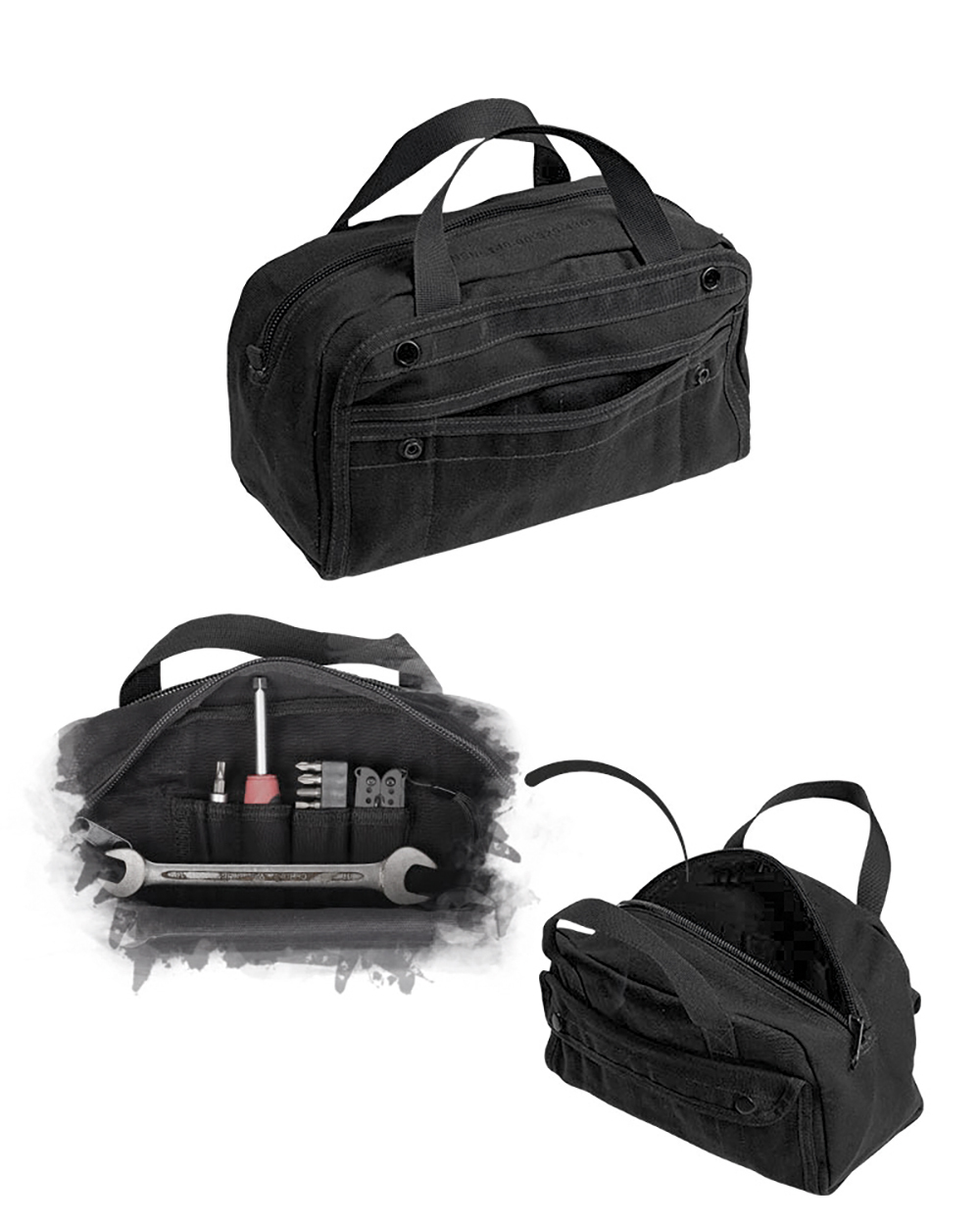 The Mechanic Tool Bag from Mil-Tec is a small tool bag with two outside pockets and one main compartment.