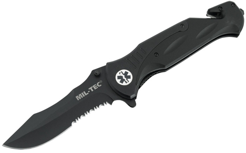 Mil-Tec Rescue Knife Medical Pocket Knife 440/G10 One-handed knife with partial serrated edge, 440 steel blade and fiberglass reinforced G10 handle scales.