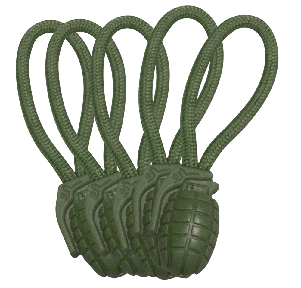 5 Ring Puller in the shape of a hand grenade, for easy attachment e.g. to zippers or loops.