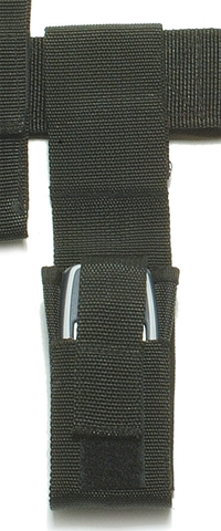 With Velcro closure, wearable by an integrated loop on the belt, thus a very low application