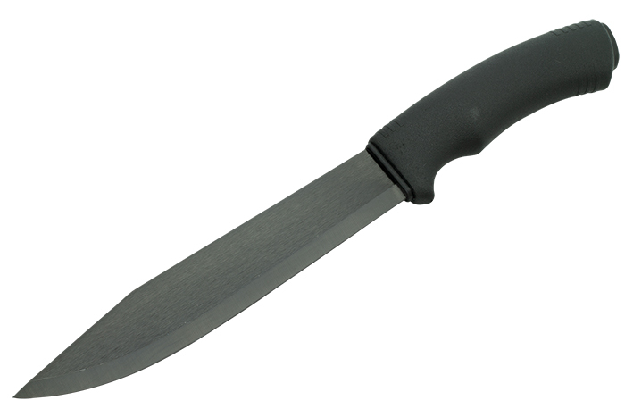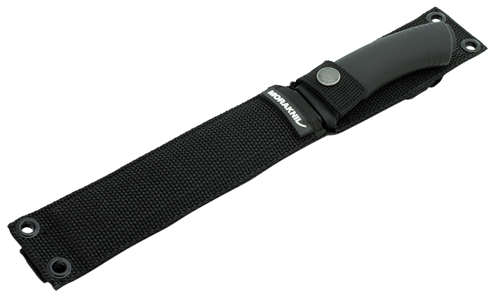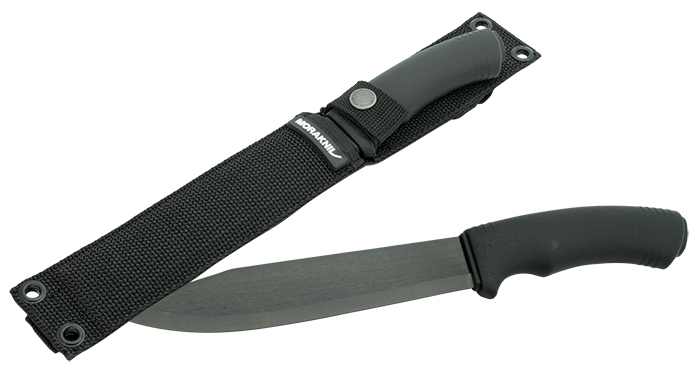 The extra long carbon steel blade of the Morakniv Pathfinder is 170 mm long, 3.2 mm thick and has a black anti-corrosion coating. The black coating not only protects, but also looks good and gives the knife a slightly tactical look. The back of the blade is specially ground for use with a firestarter. The rubber handle grants the necessary grip even when working with wet hands. The knife has a MOLLE compatible sheath made of durable nylon.