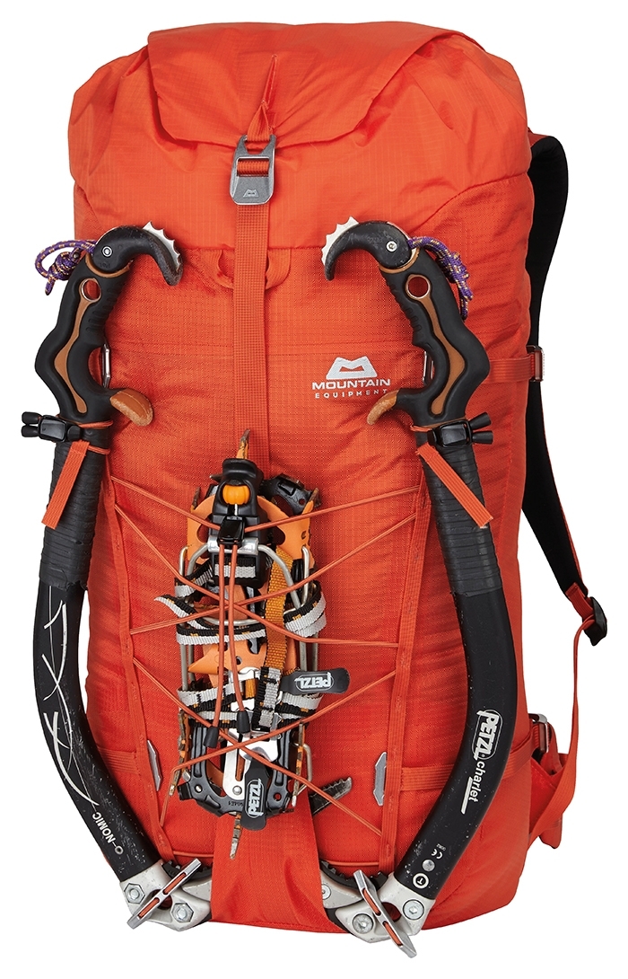 The Tupilak 37+ from Mountain Equipment is a small and ultra-light backpack made of durable and highly water-repellent material.
