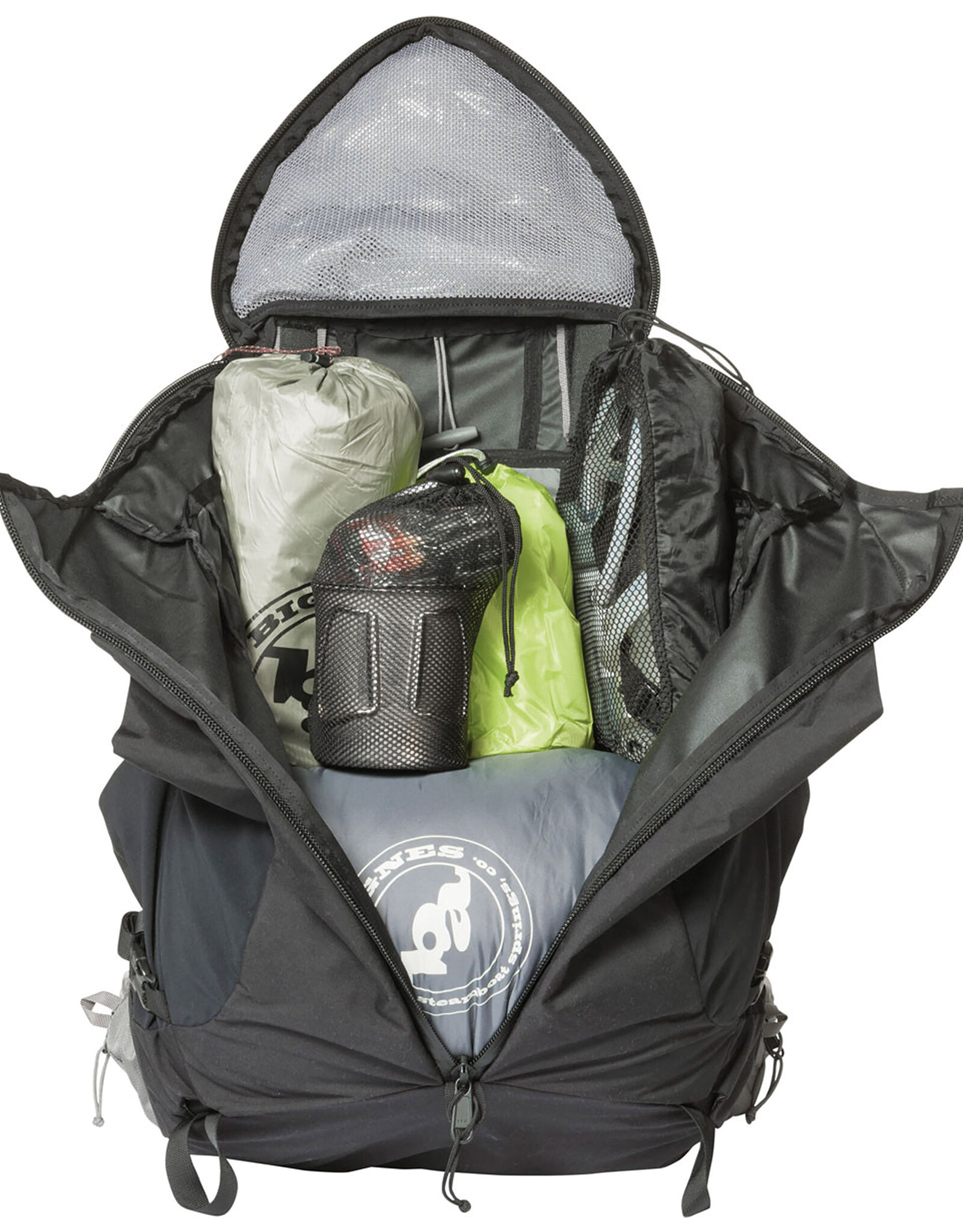 Main compartment with 3-ZIP zippered opening, hydration bladder pocket and cable/tube opening.