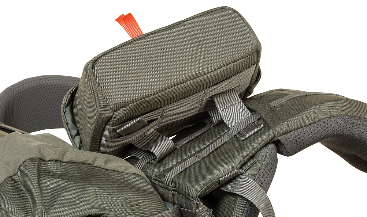 Two PALS attachment loops with push button for MOLLE system (25 mm).