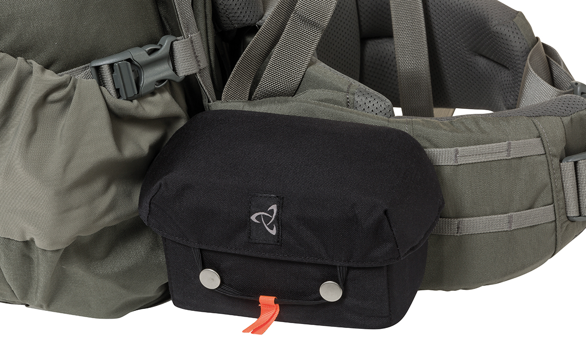 The padded Mystery Ranch Forager Box pouch provides quick access to essentials like food, first aid kit, GPS or flashlight and can be attached to either side of any Mystery Ranch hip belt