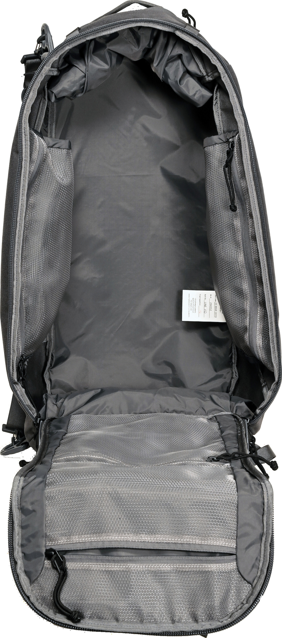 Main compartment with horseshoe-shaped 2-way zipper opening for easy access and 4 zippered mesh pockets.