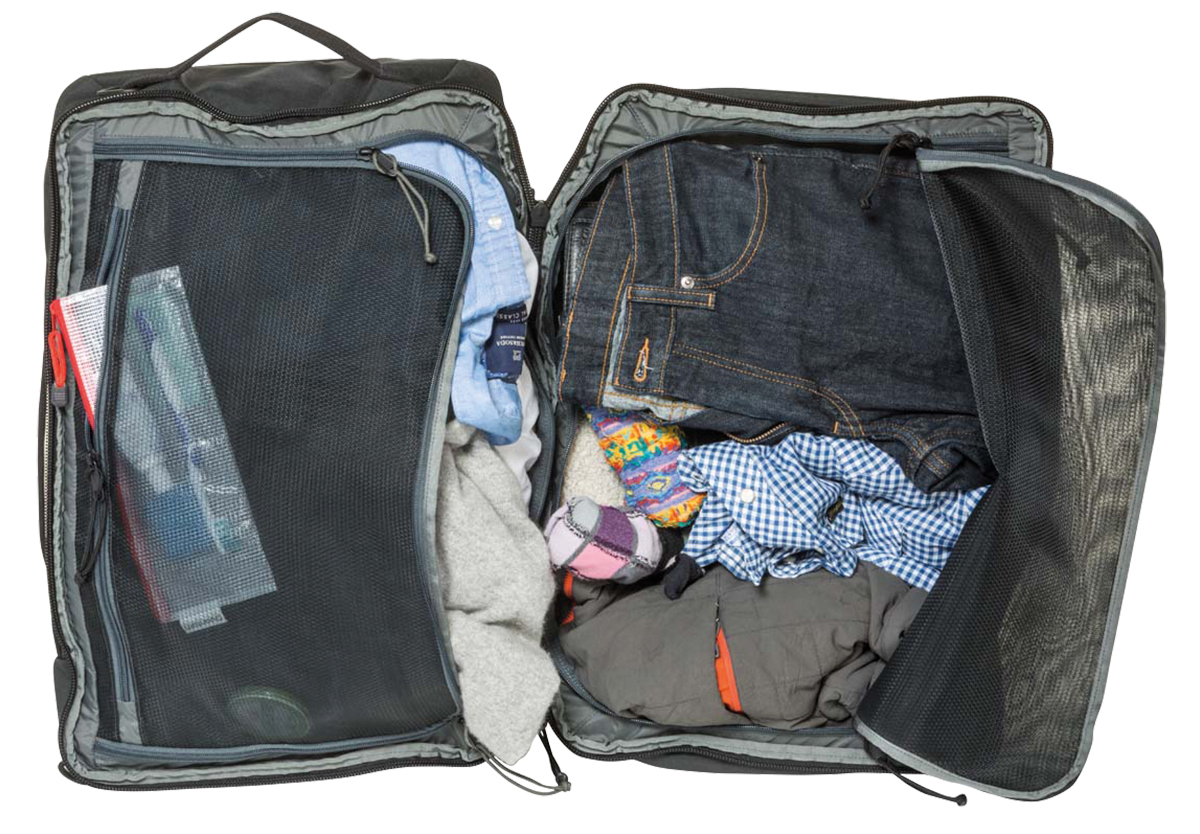 The Mission Rover from Mystery Ranch is a slim but spacious travel backpack with 43 liters of volume. Each half of the the bag has zippered dividers that allow you to organize your clothes and accessories. There is a shoe compartment as well as a laundry pocket. The Mission Rover can be used as a suitcase, shoulder bag or backpack for versatile travel.