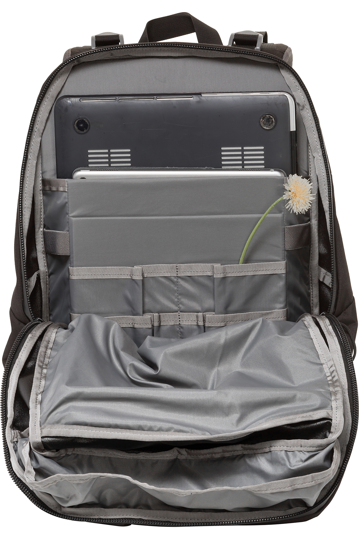 1 large main compartment with various slip pockets and padded laptop compartment (up to 15 inches).