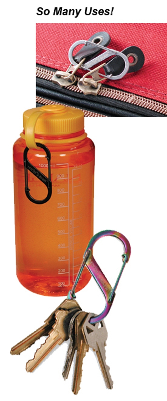 Nite Ize S-Biner® are extremely versatile stainless steel wire bail carabiners with double opening. The two openings allow an infinite number of applications. The high tensile strength guarantees cohesion even under heavy loads.