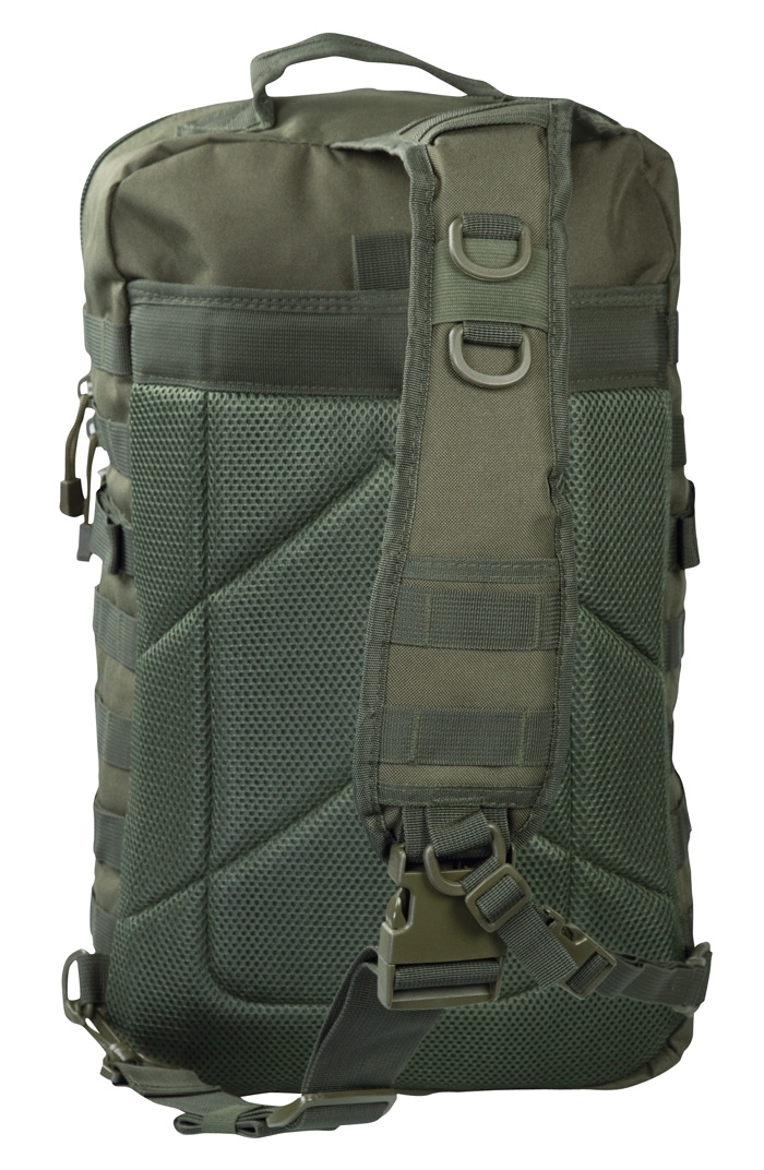 The One Strap Assault Pack has all the features of a small to medium sized backpack with approximately 35 liters of volume and plenty of room for gear
