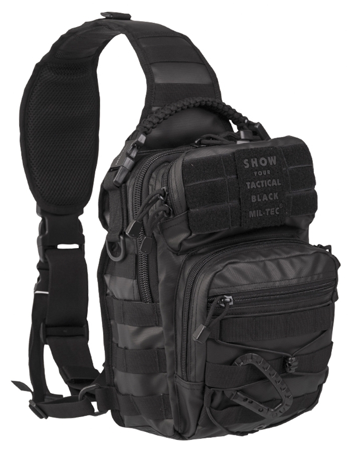 The One Strap Assault Pack Small from Mil-Tec is a small functional slingbag with 10 liters volume in stylish Tactical Black. The backpack is made of waterproof 1000 denier polyester, which is PU coated on the outside.