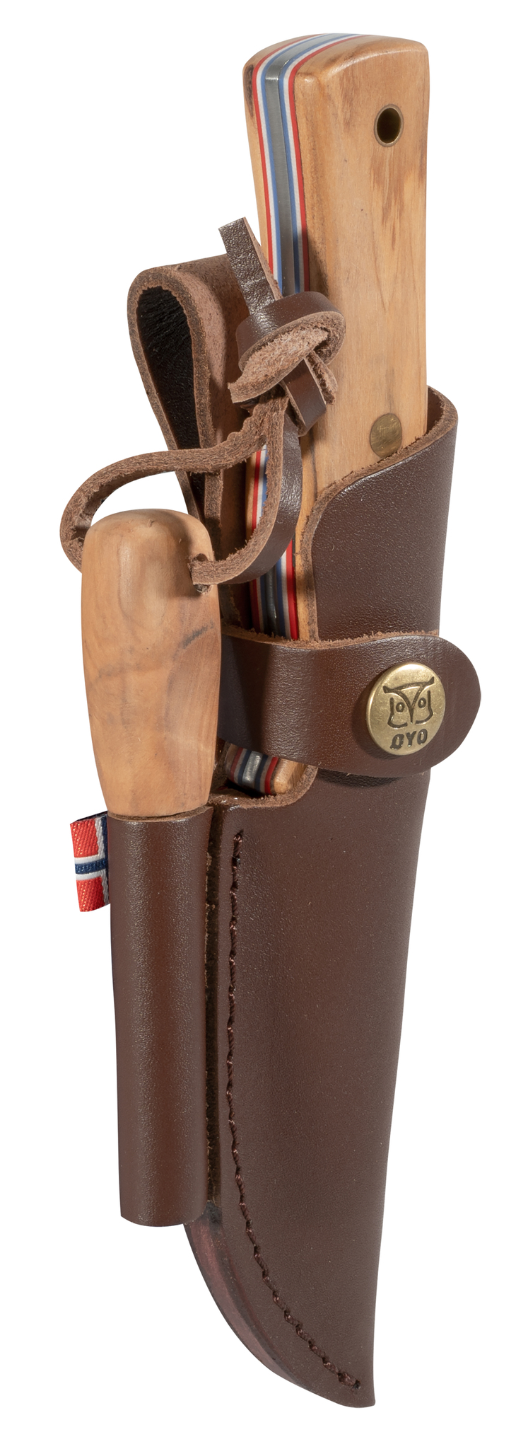 The handle is made of olive wood and the liners give the colors of the Norwegian flag.