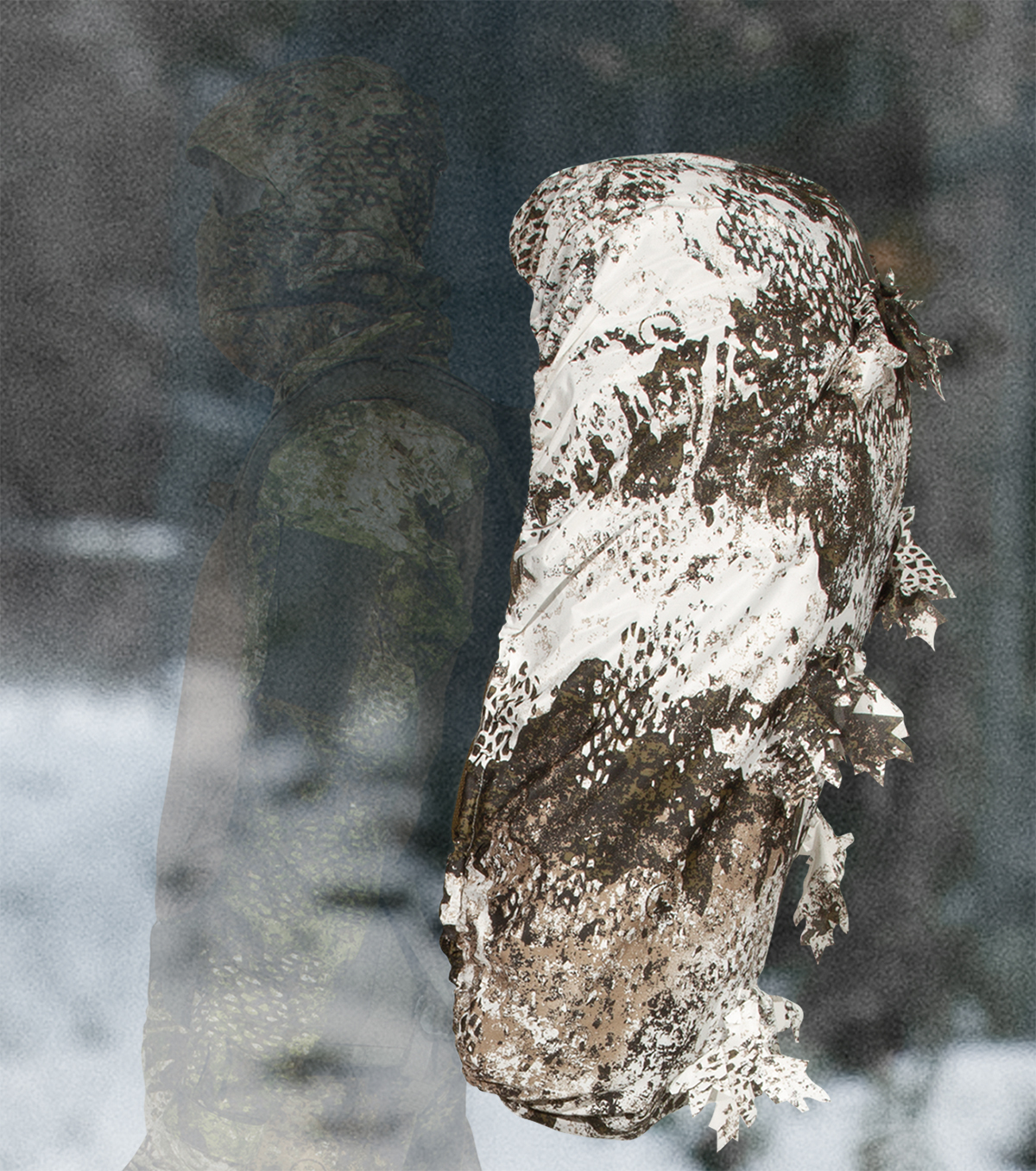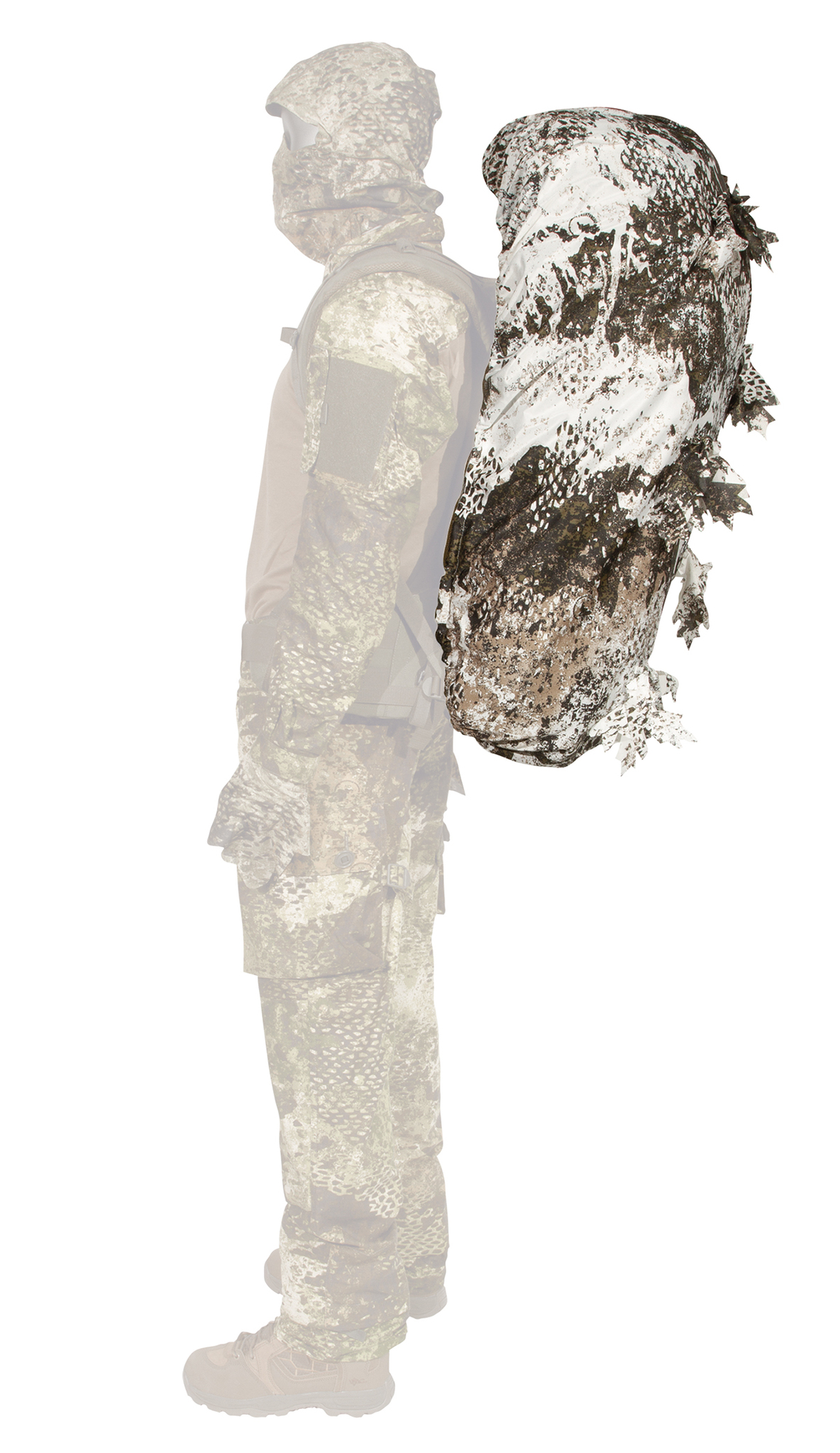 With the PHANTOMLEAF® PYTHON BACKPACK COVER G1, made of a new type of mesh material, backpacks up to approx. 120 liters or items of similar size can be camouflaged in a flash