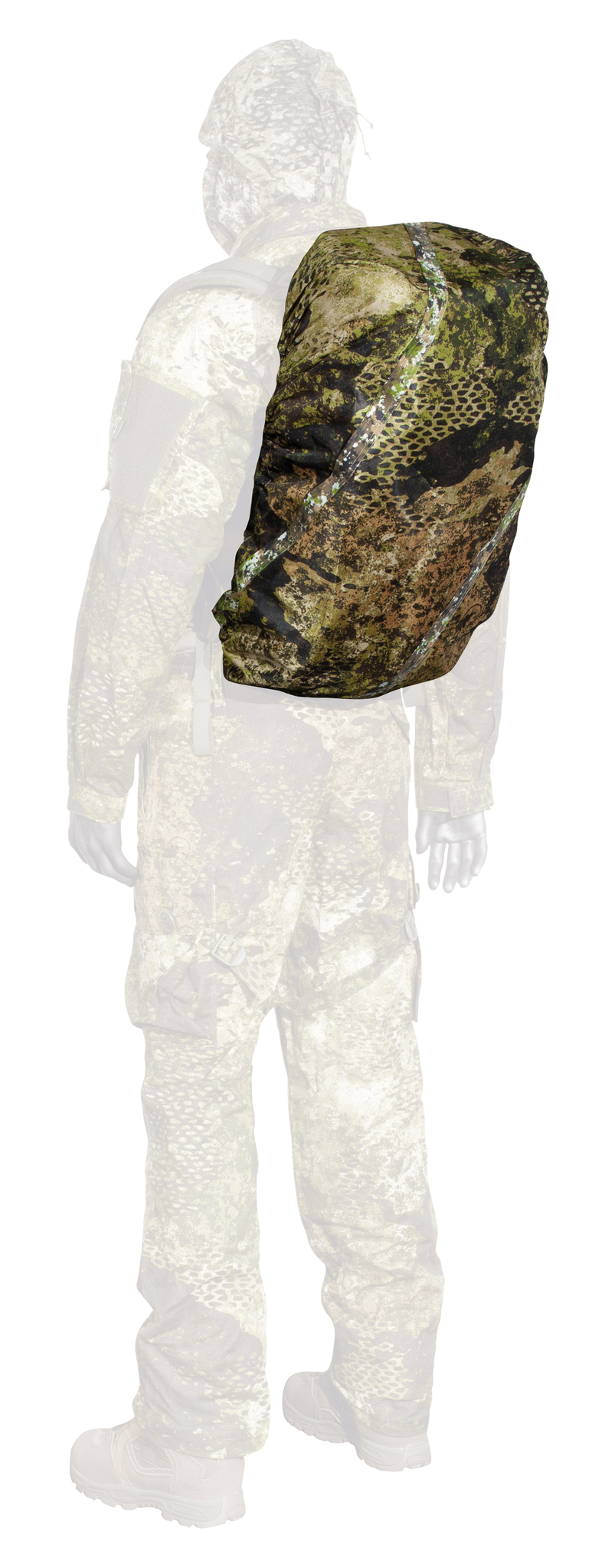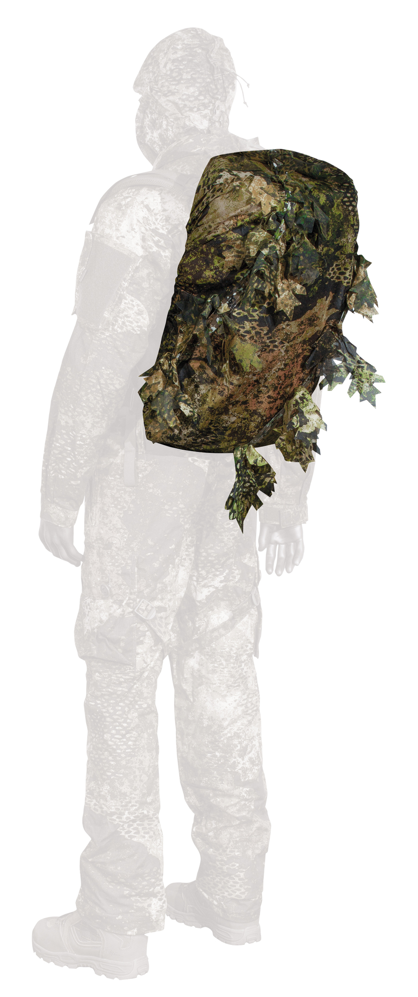 With the PHANTOMLEAF® PYTHON BACKPACK COVER G2, made of a new type of mesh material, backpacks up to approx. 60 liters or items of similar size can be camouflaged in a flash