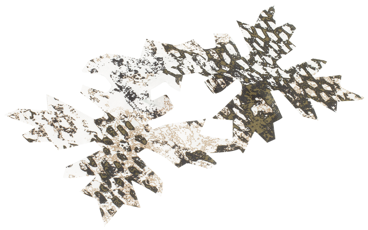 The PHANTOMLEAF® PYTHON LEAVES G1 imitation leaves are particularly suitable for scenarios with a leafy environment. They can be individually knotted into the articles in the specially developed slit tape and camouflage loops to match the basic pattern.
