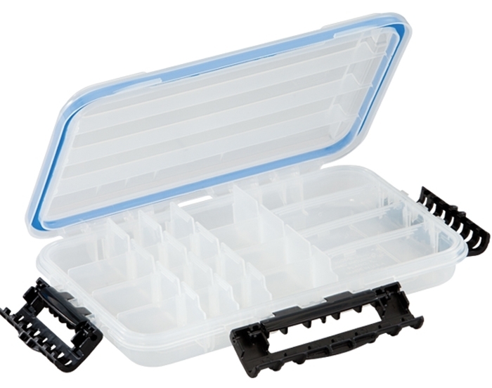 Plano® waterproof plastic box with three clamp closures, Dri-Loc® silicone ring seal and divider.