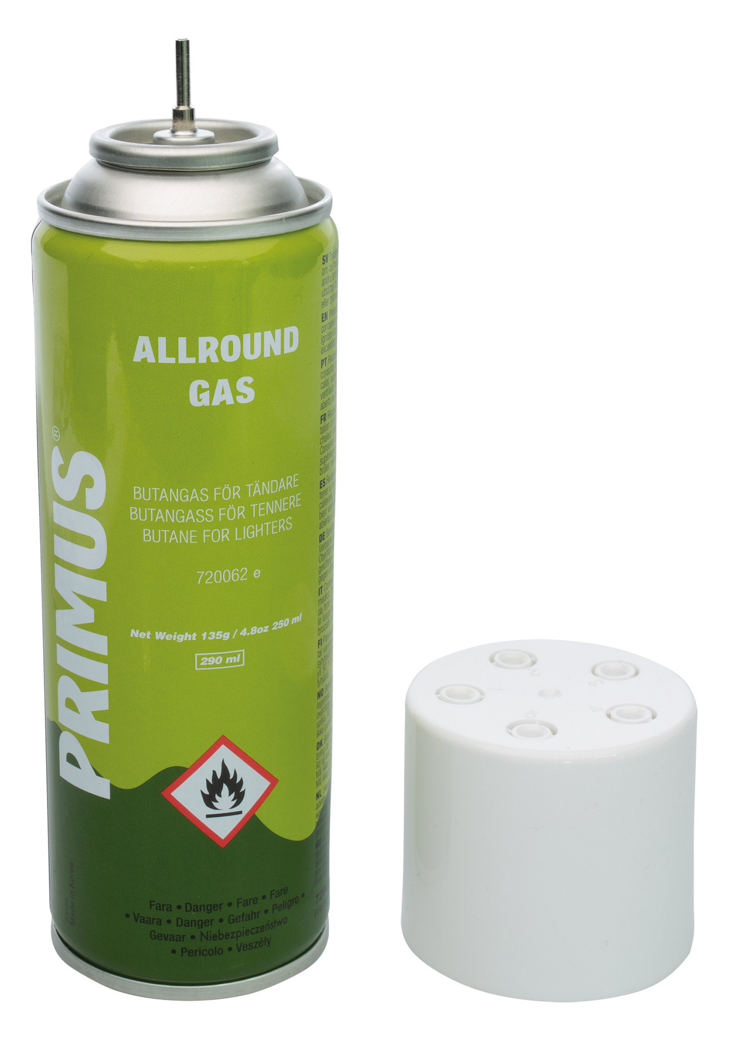 The Allround Gas from Primus is ideal for filling gas lighters, gas lighters, etc.. Five different filling adapters are included in the lid.