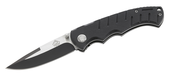 This Puma TEC one-handed knife offers a firm grip with its robust handle scales made of ribbed G-10 and the pronounced finger recesses