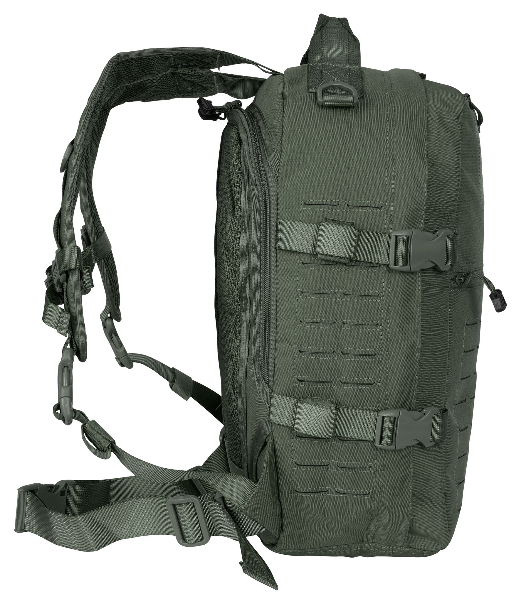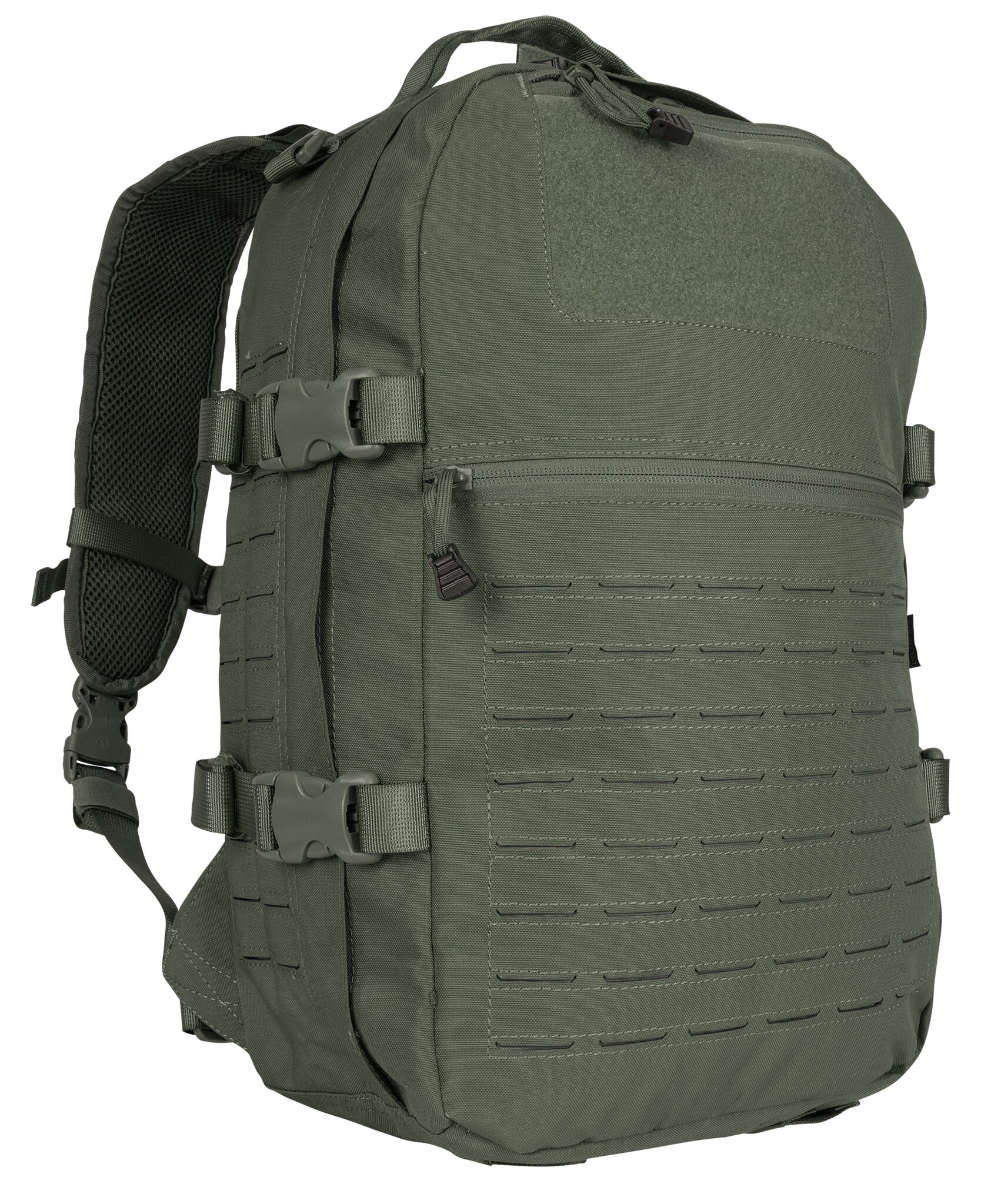 The large zippered main compartment can be opened wide from the top or front. Thanks to the padded carrying system, the RRMP1 backpack lies comfortably on the back. On the sides and on the front are practical MOLLE tabs in laser-cut design, with which you can expand the backpack modularly if necessary. The backpack is made of durable Cordura.