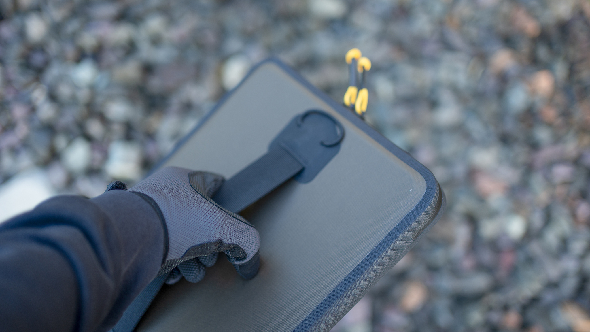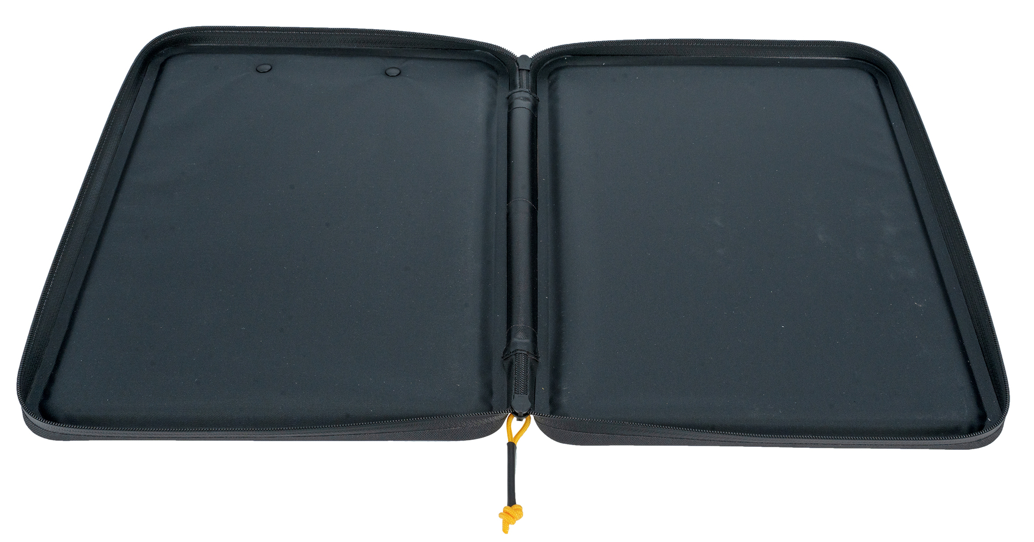 You can also store a tablet or a small notebook (in a sleeve) in the Field Desk to protect it from water.
