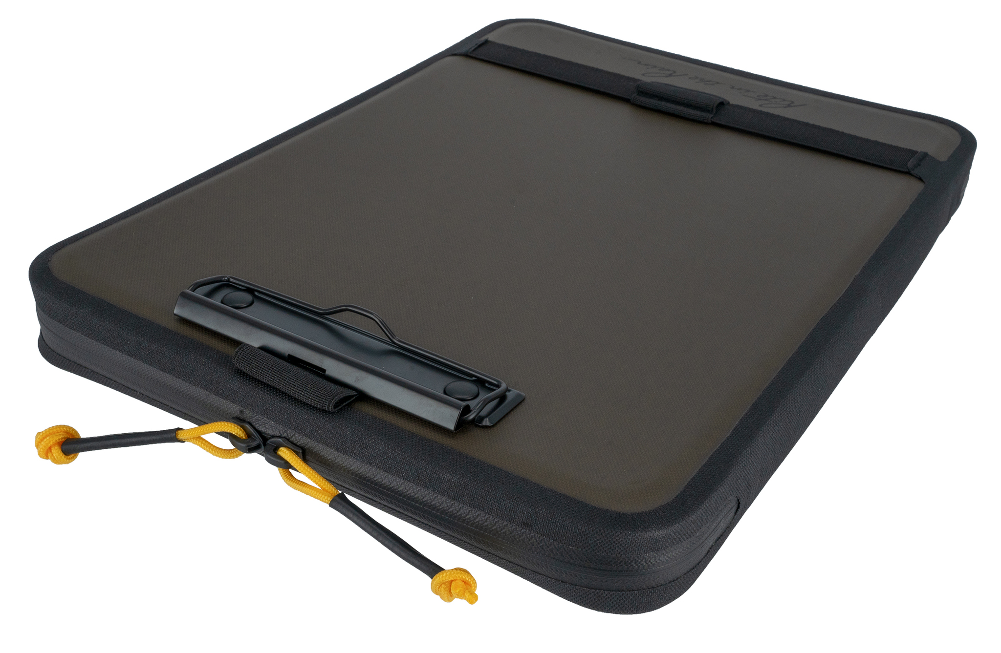 Everything from the TPU material to the welded seams and joints is designed to protect your gear. A rust-resistant clip and elastic band secure the sheets on a windy day and keep your pens close at hand.