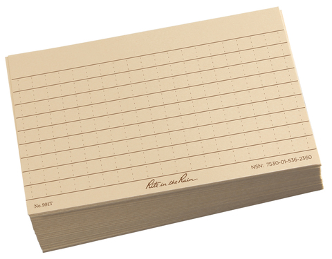 The acrylic-coated Rite in the Rain Tactical Index Cards are absolutely waterproof and can be written on even when wet.