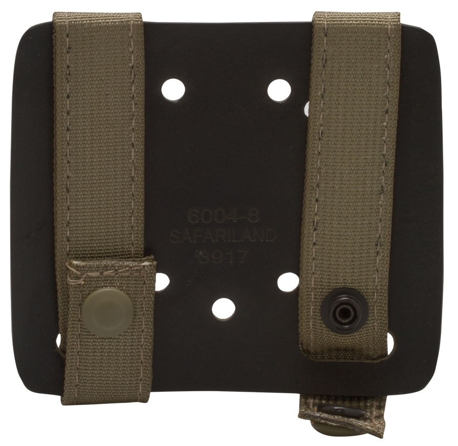 The holes in the plate allow the mounting of Safariland holsters that can be attached to the carrier with screws,