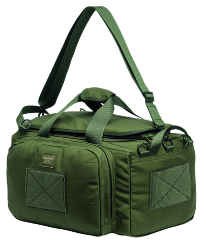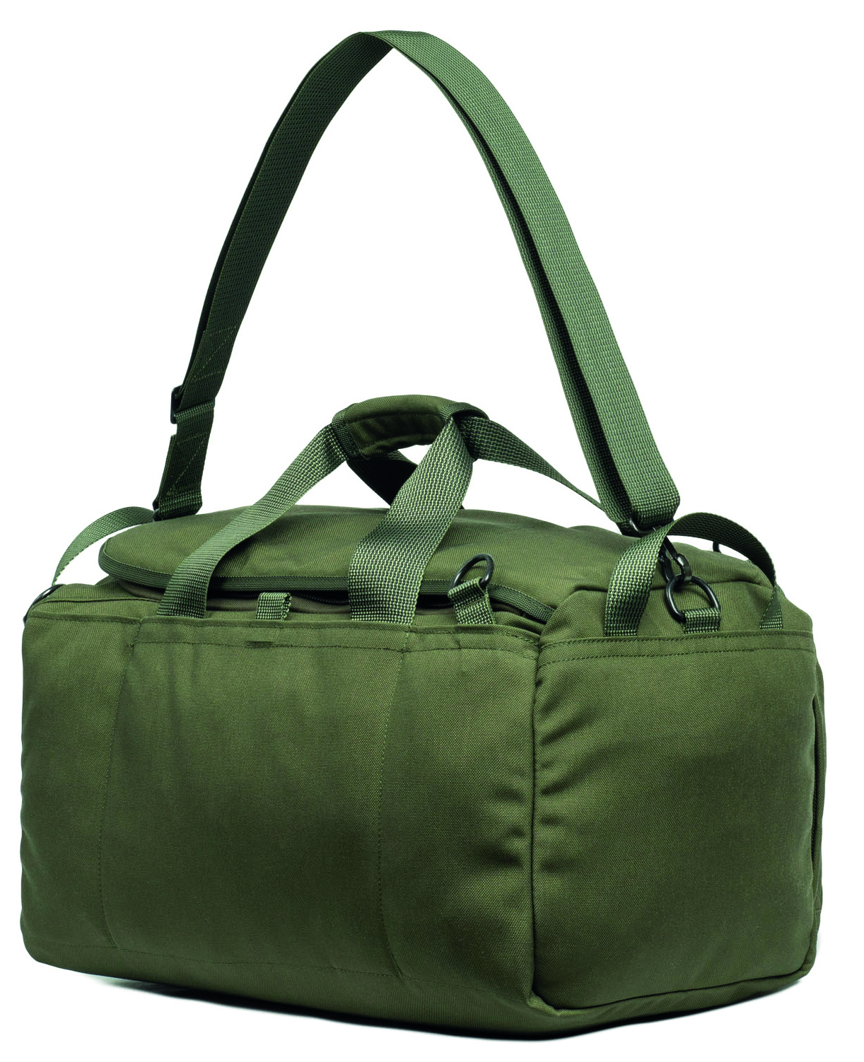 The outside of the dufflebag has two 10 x 15 cm Velcro areas to attach flat pockets, IDs and patches. The D-rings on the outside can of course also be used to attach other utensils.