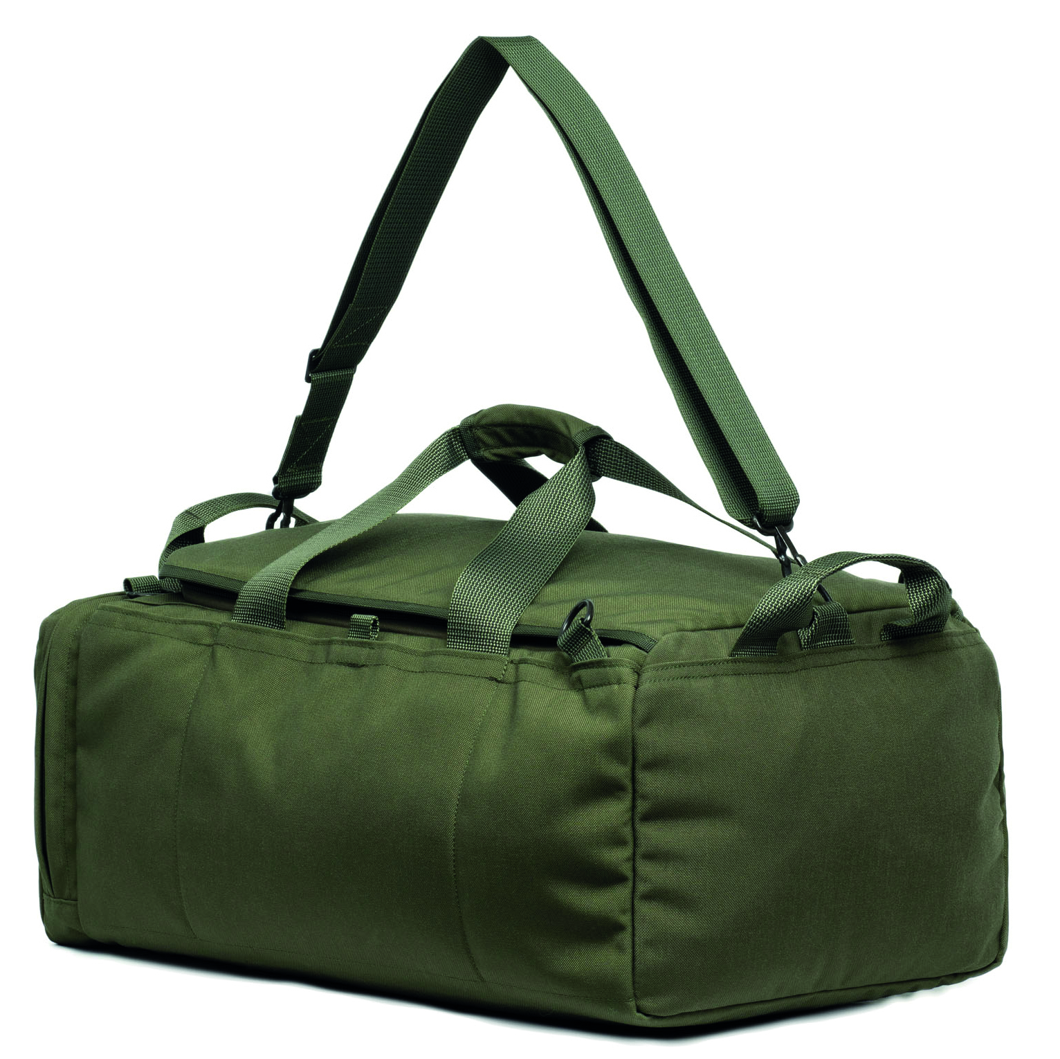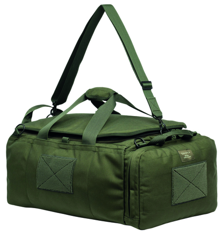 The outside of the dufflebag has two 10 x 15 cm Velcro areas to attach flat pockets, IDs and patches. The D-rings on the outside can of course also be used to attach other utensils.