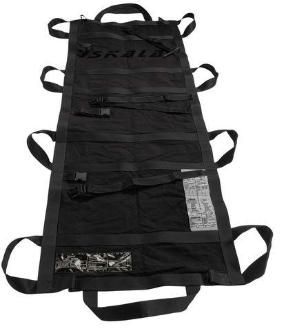 The scale TES-1 ZEKON is a lightweight and extremely robust recovery sling for safe transport in an emergency. The cover of the stretcher is made of robust cotton canvas with carrying loops and reinforcements made of 5 cm wide webbing. The portable stretcher has six side carrying loops and one loop on each side of the head for any necessary pulling of the injured person out of the given emergency situation. With the adjustable safety straps on the inside, the person in distress can be easily and quickly fixed. The recovery sling can be conveniently folded, rolled up and stowed in the pack sack. It requires little space and can be stowed very well, it fits optimally in vehicles and first aid cabinets.