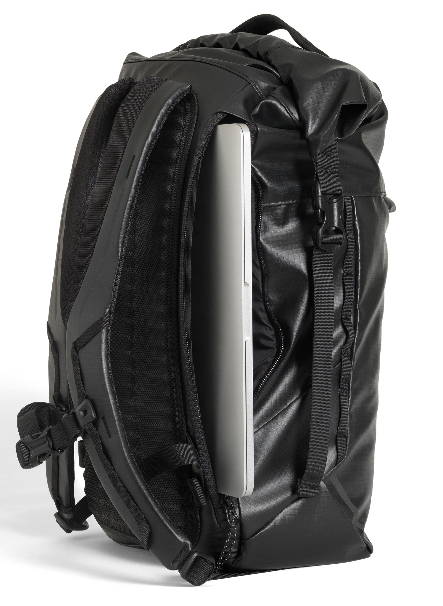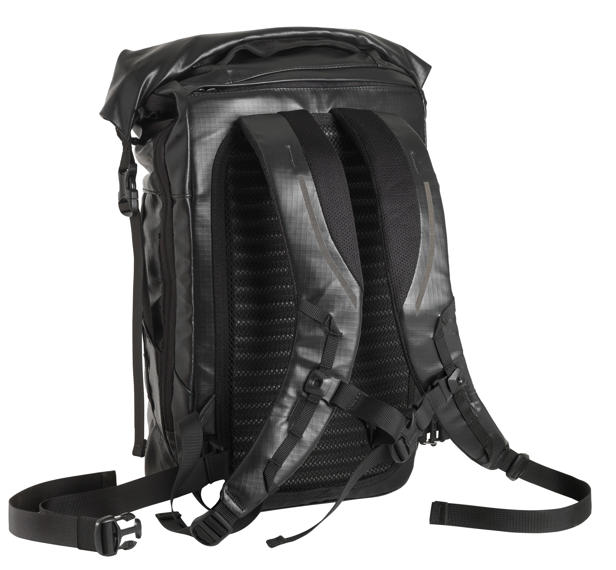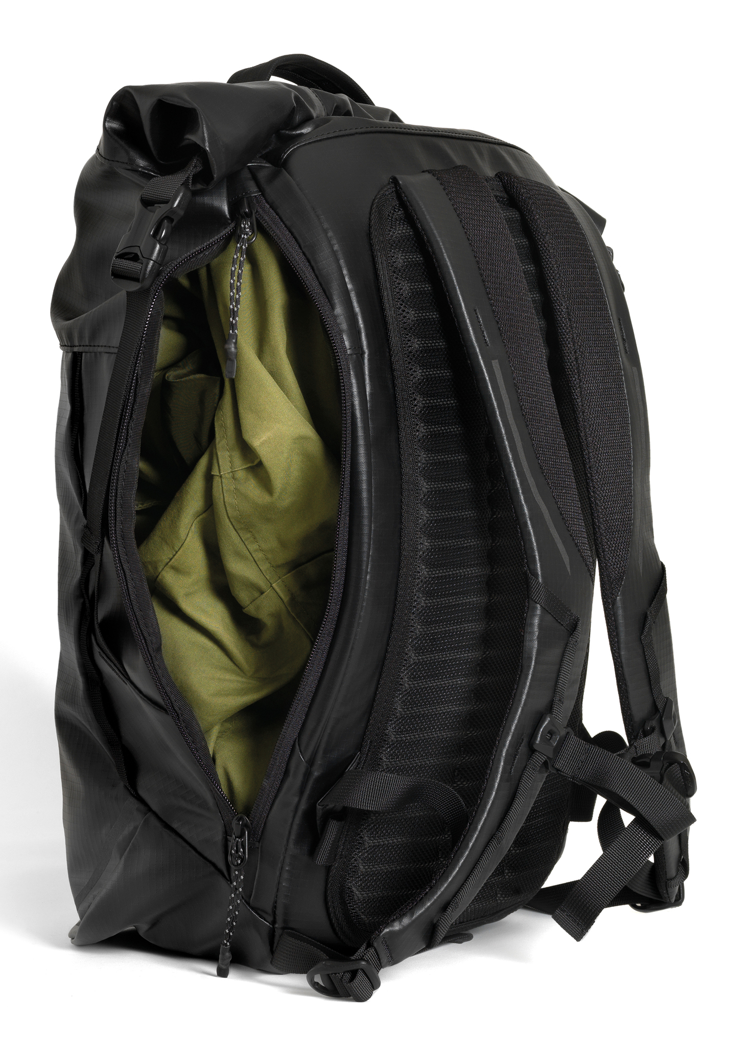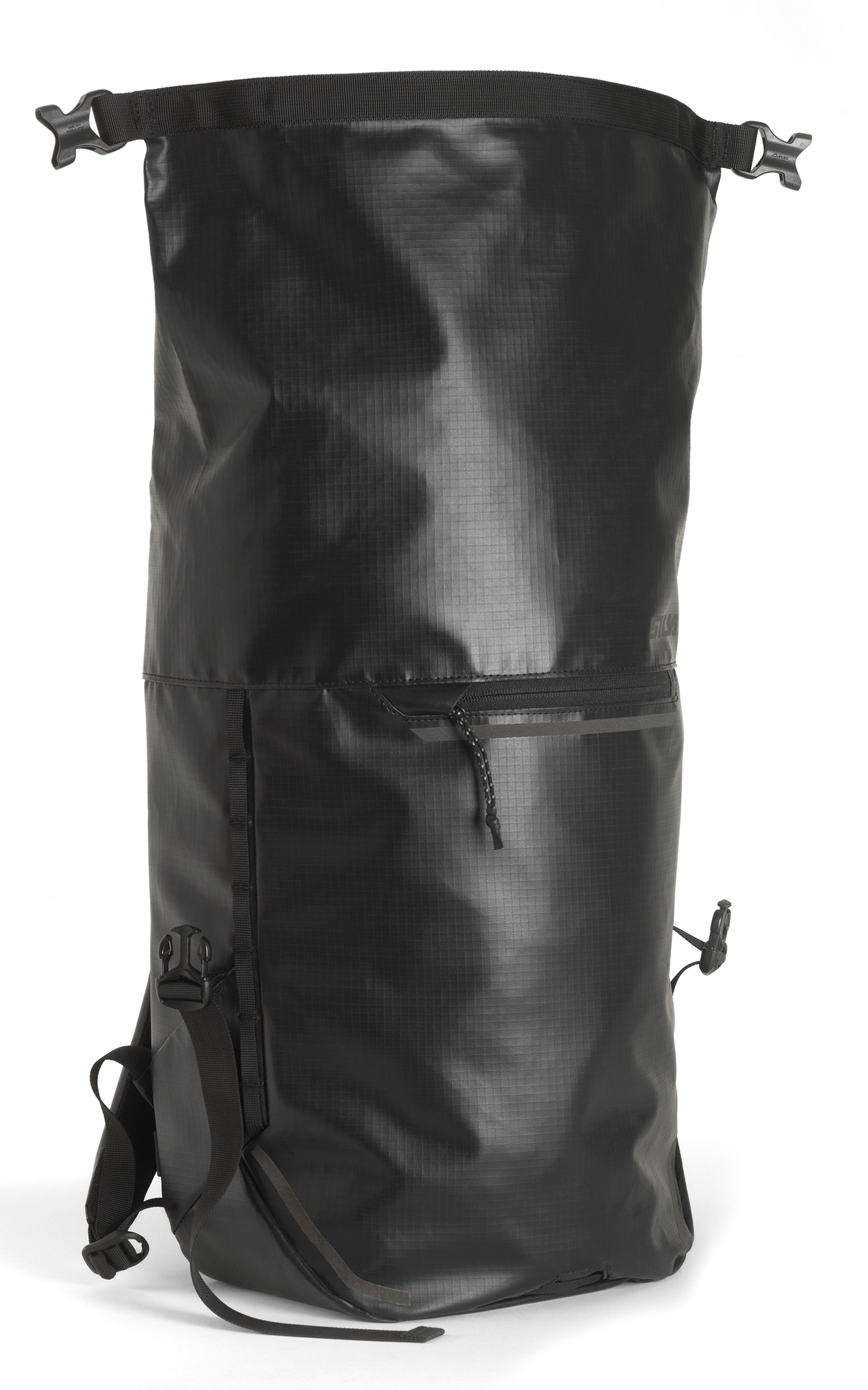 Main compartment with waterproof roll-top closure and side 2-way zip access.