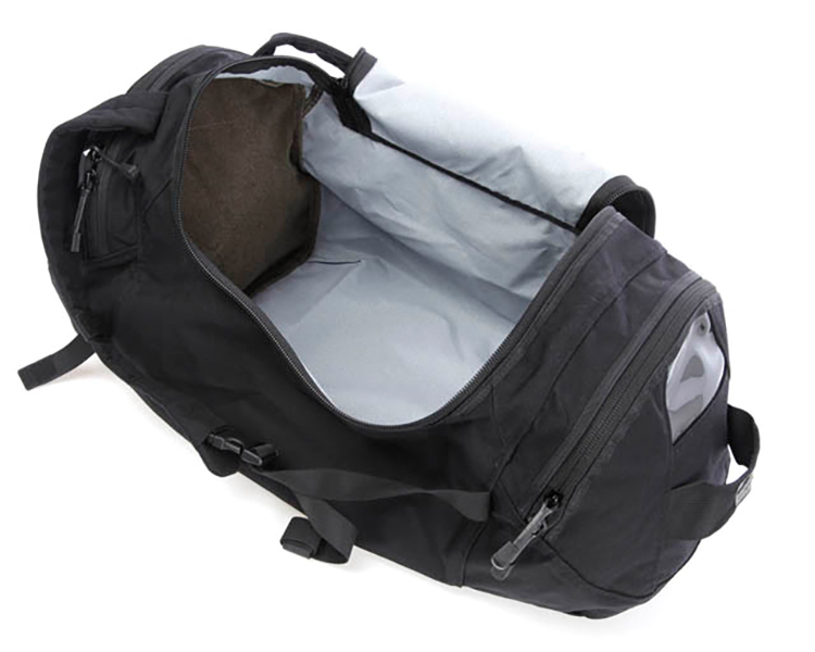 The Duffel Bag from SnigelDesign is a tote bag and backpack in one. The padded handles also serve as shoulder straps, so you can also wear the Duffel on your back. The main compartment has a wide opening and a bright interior coating that makes it easy to see inside the bag. The two side zippered pockets were designed so that you can stow a helmet inside. When not in use, you can fold the Duffel space-saving, narrow. The Duffel Bag 55 L is generally accepted as hand luggage.