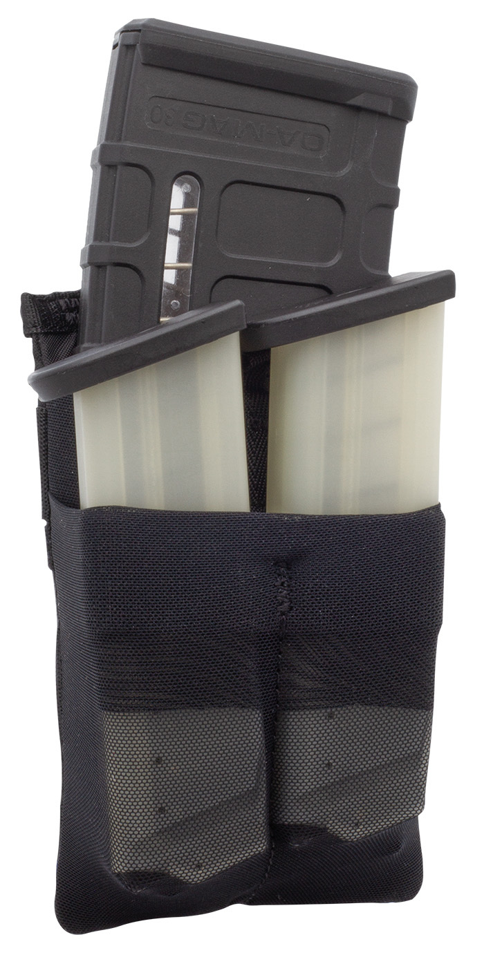 The SnigelDesign Elastic Mag Pouch is a low-profile, low-profile magazine pouch for one AR and two pistol magazines.