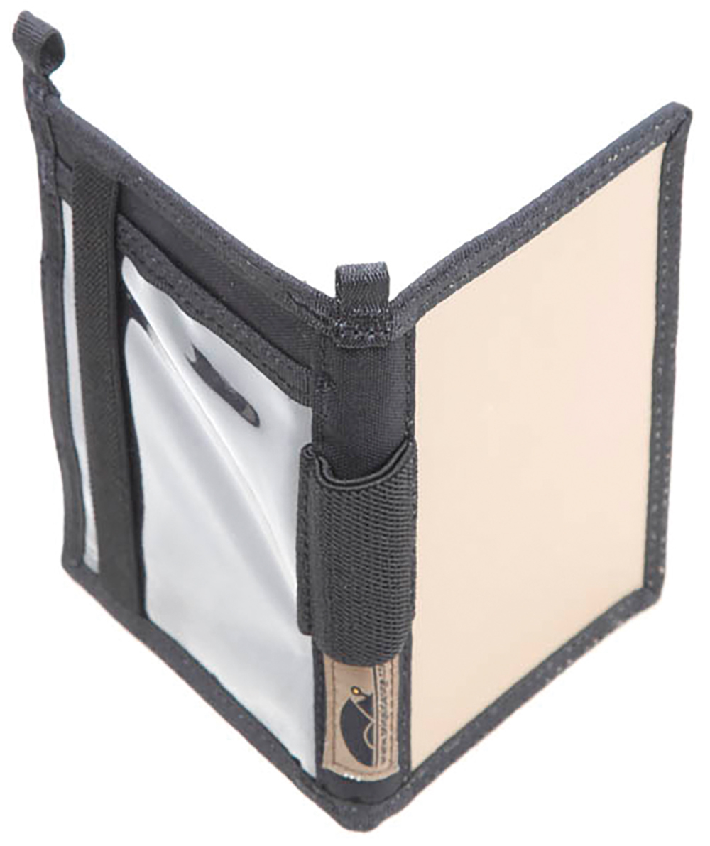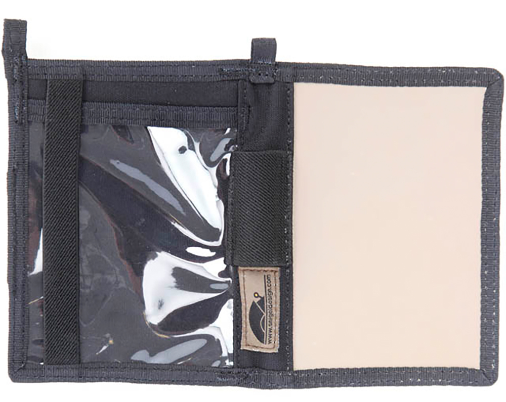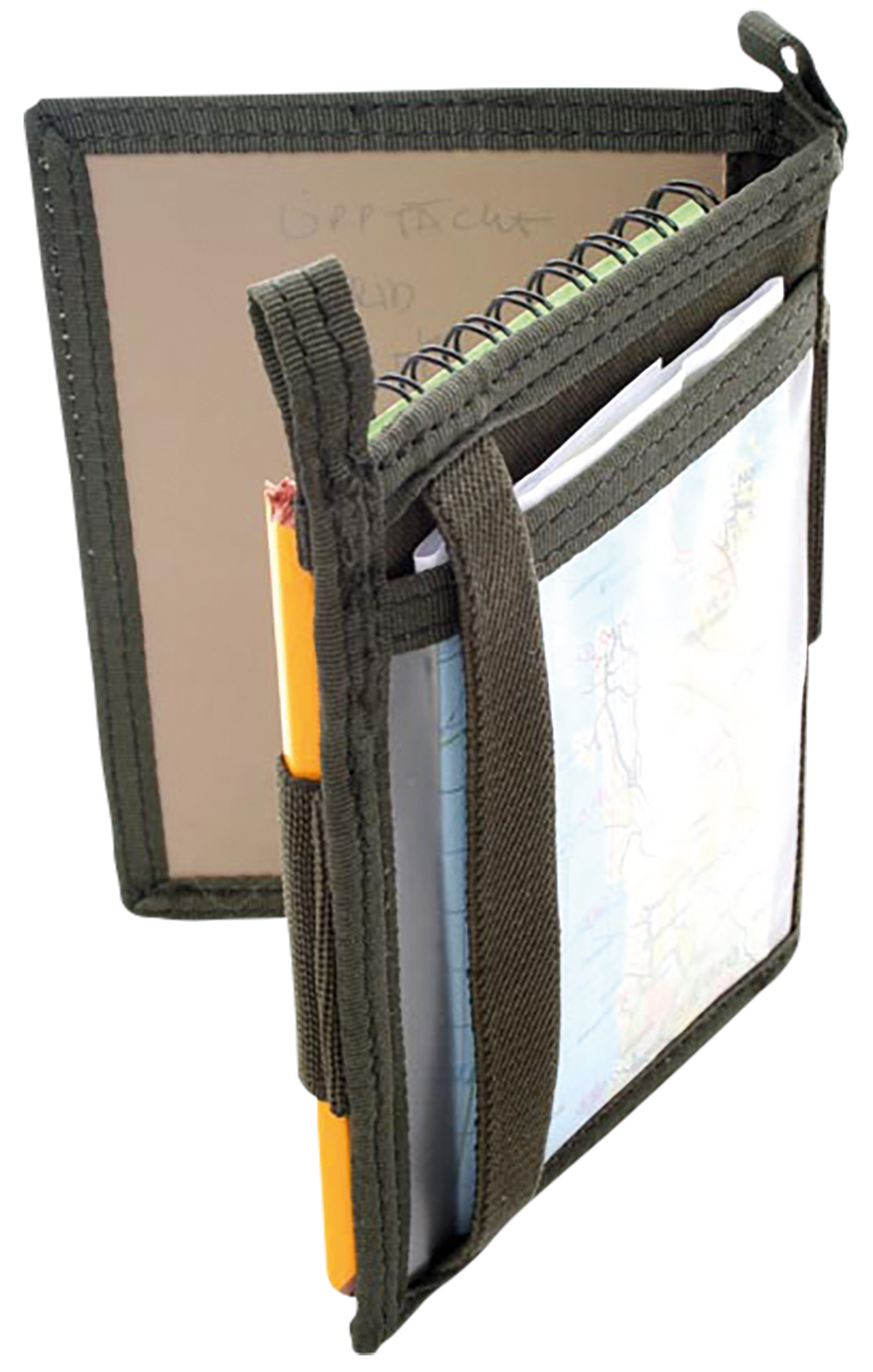 Fits small notebooks (75 x 130 mm) attached at the top or side.