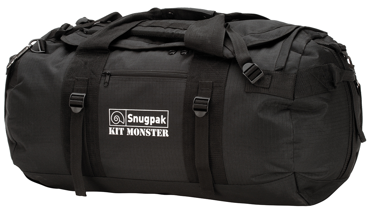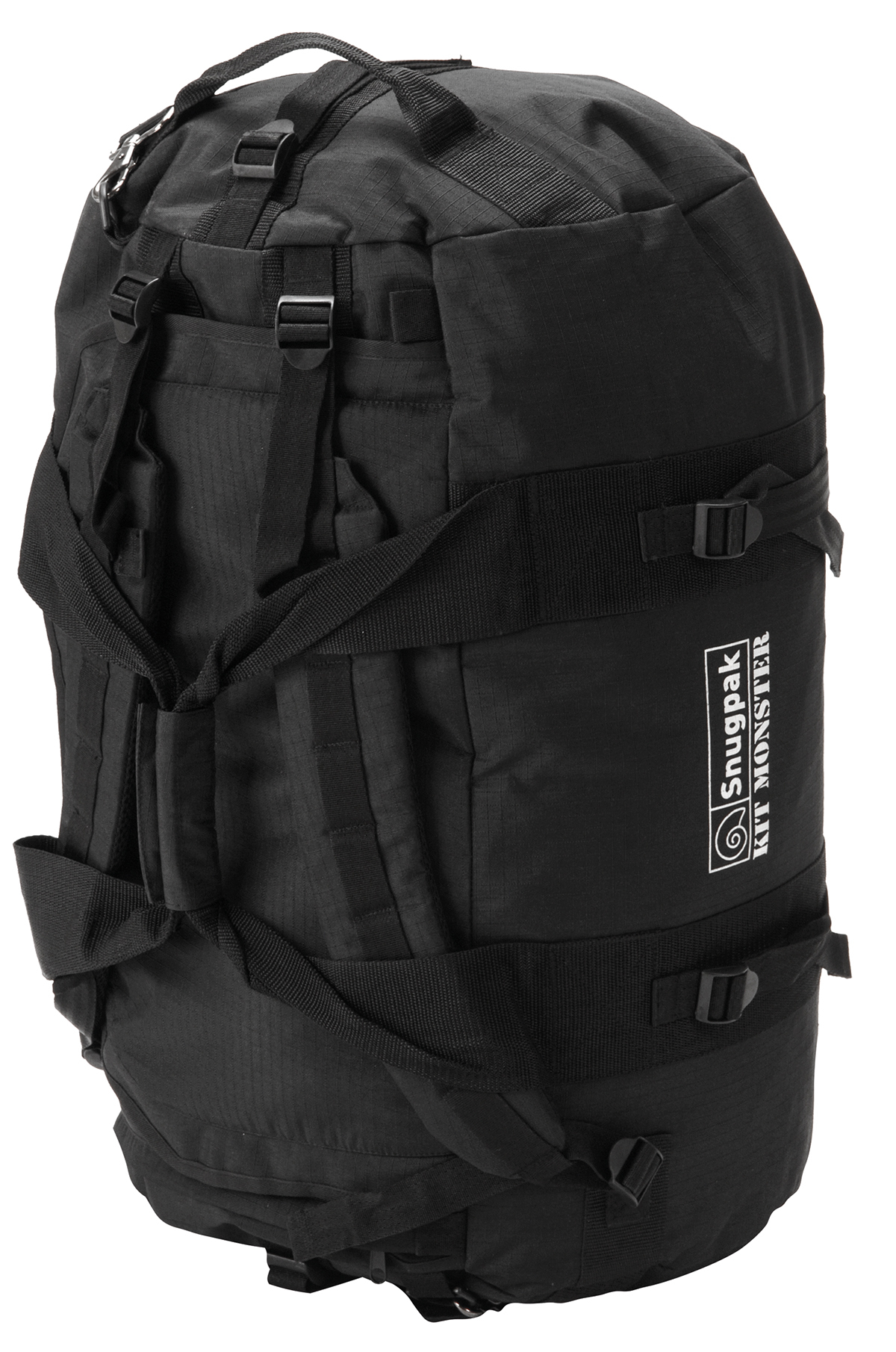 The Snugpak Kitmonster 65 is a 65 liter travel bag with multiple straps that can be worn as a travel bag, over the shoulder or even as a backpack. With grab handles on each end, this bag is easy to transport to and from a vehicle, and the unique compression straps to reduce volume make it easy to carry and transport.