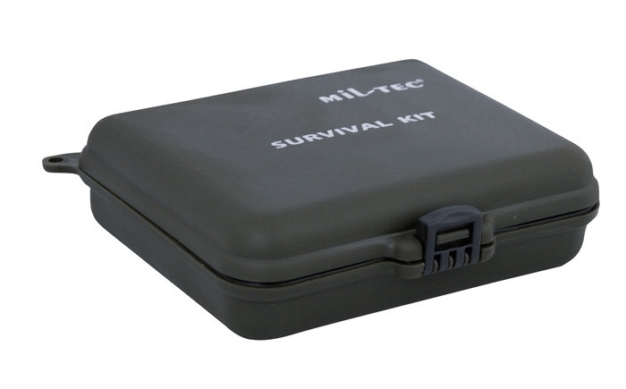 The survival pack, packed in a waterproof plastic can.