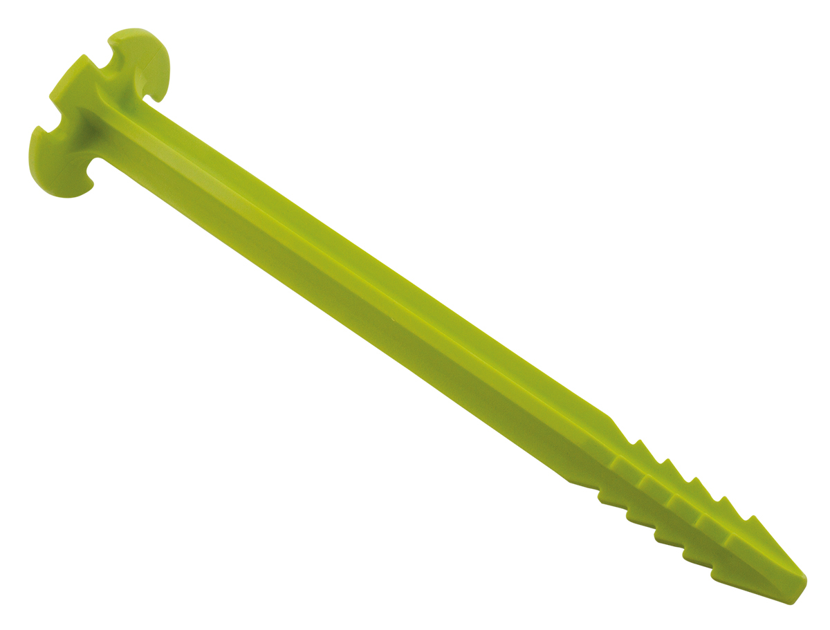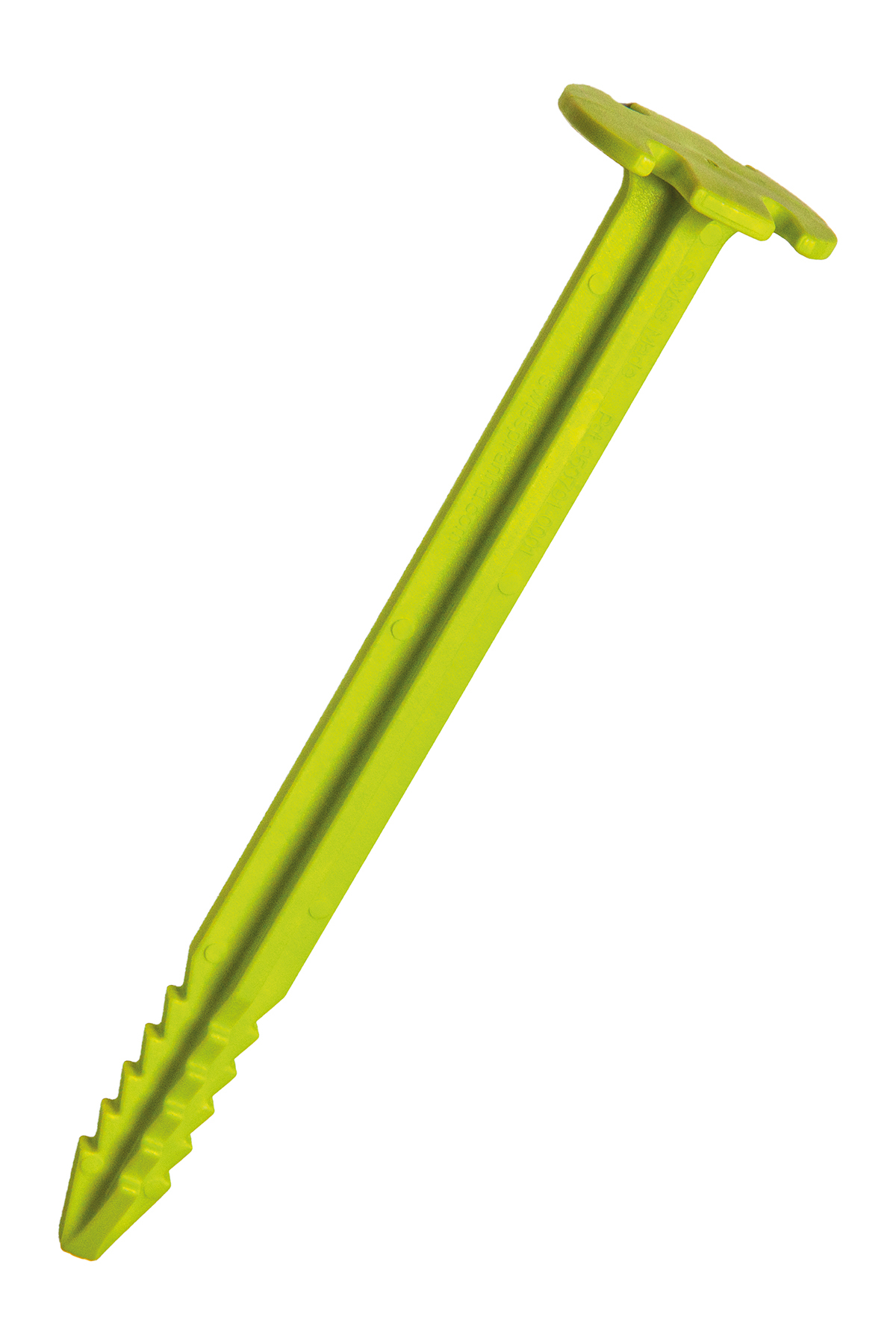 The SwissPiranha GS150 tent peg is the vegan version of the RT150. This peg is made of 100% bio-based plastic and is absolutely GMO-free. With a weight of 16.2 g at 15 cm total length, it is an extremely versatile peg for medium-sized tents, pavilions, tarpaulins, etc..
